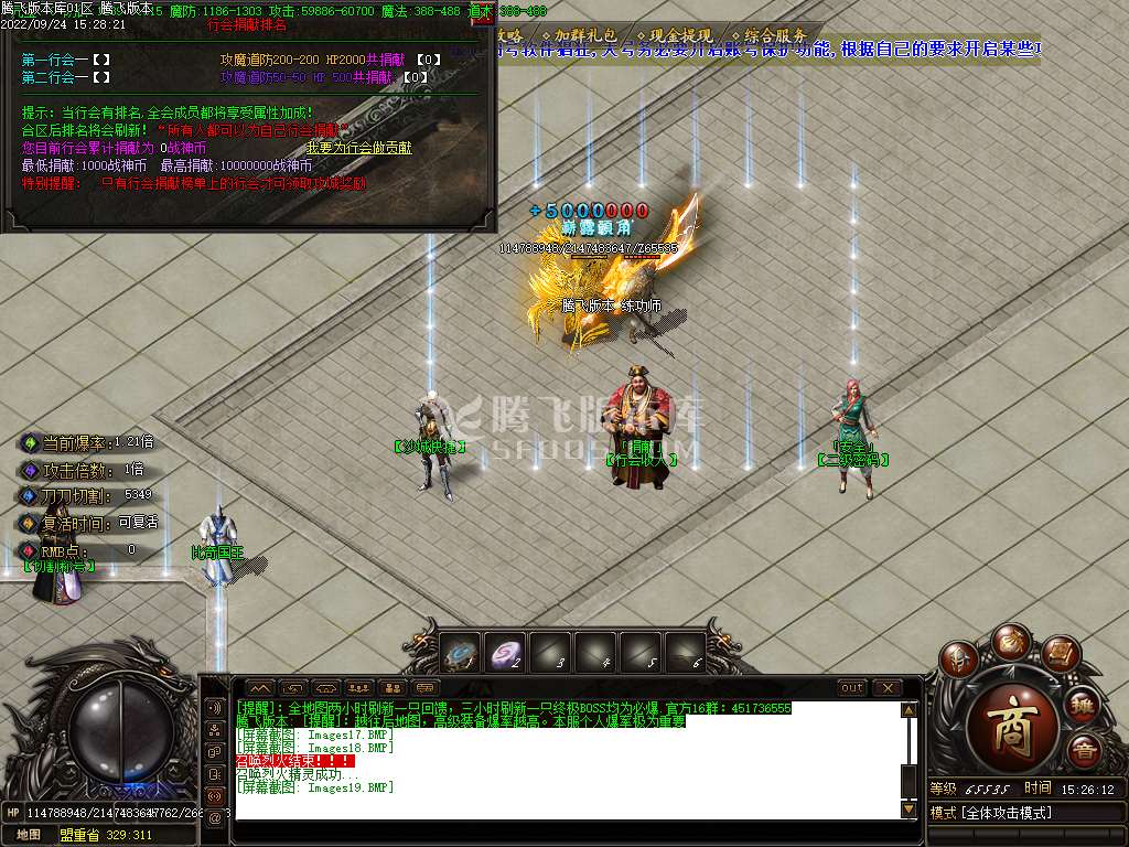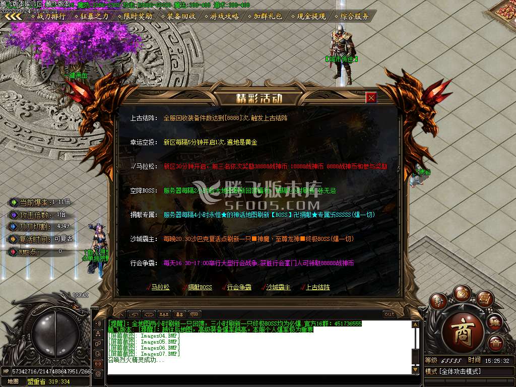 【战神最新版】 7.全服每2个小时各地图刷新BOSS,3小时刷新终极BOSS均为必爆光柱
