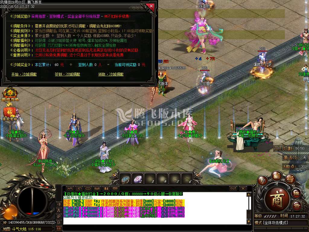 散人玩家- 70RMB 免费顶赞+免费沙捐献+狂暴+富豪 起步优势明显 打币点勋章;积攒材料搞6转;开始牛逼之路;