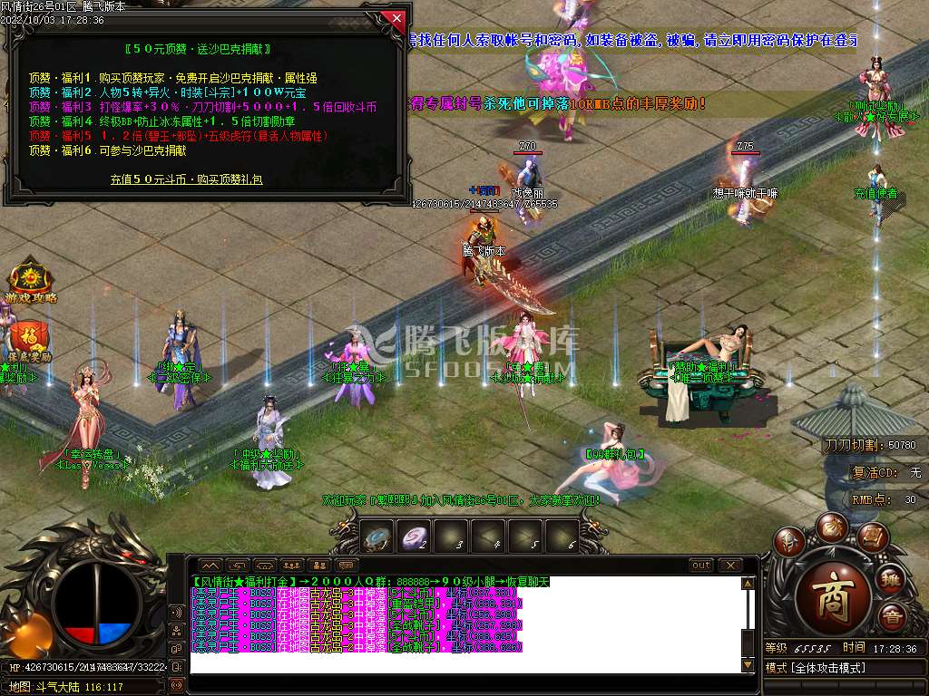 ②.500币+70RMB 同上+额外点称号到 斗帝 (2大陆附带专属地图-保底BOSS)免费领7转、外送3W币