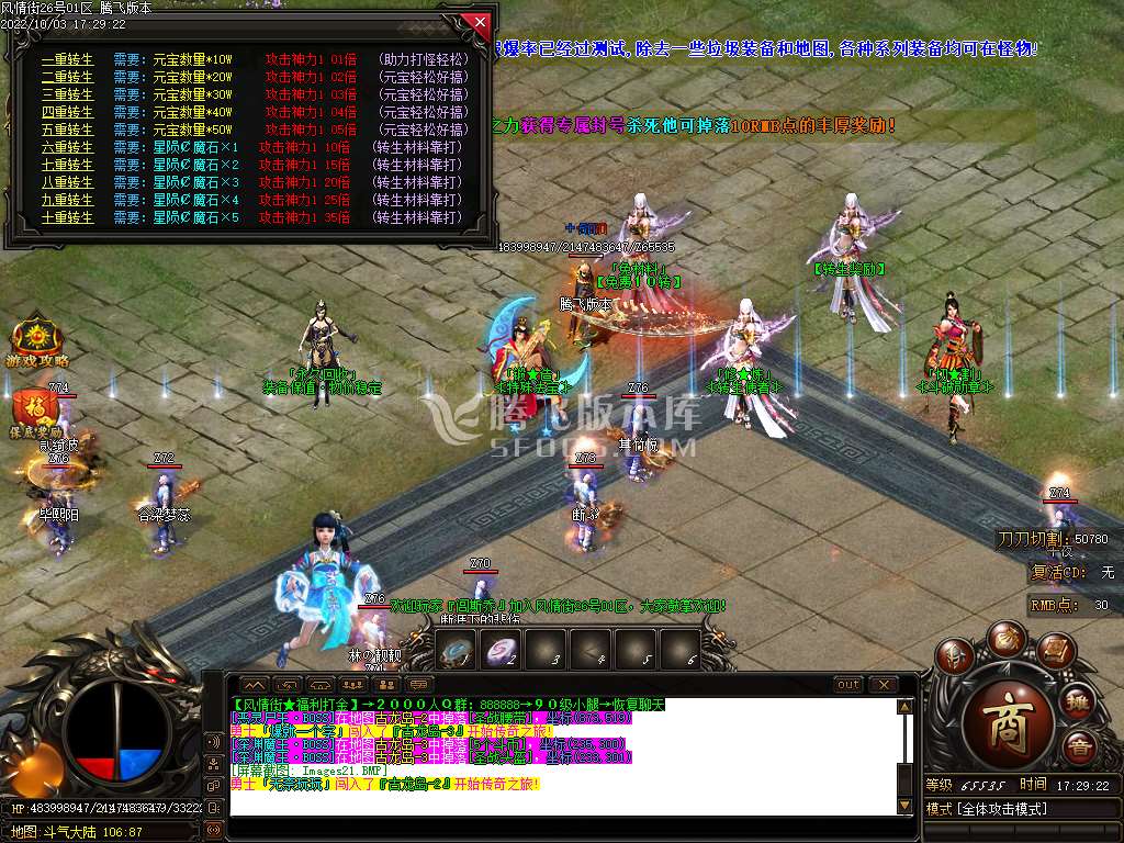重点:玩家、如果想走得更远、后期更牛、请新区无限收 转身材料 收币;新区务必让自己搞到6转;切记;