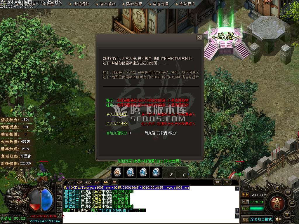 全服所有怪物有几率爆出装备宝箱,开启宝箱需要在综合服务处购买钥匙