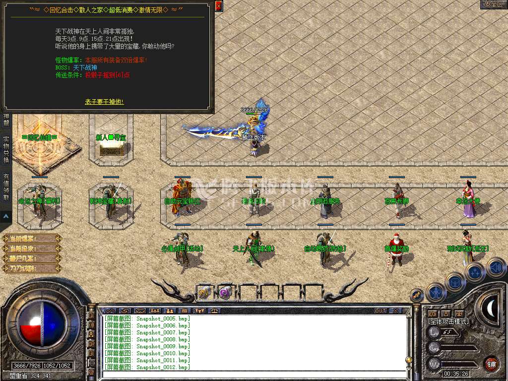 [开天]:版本介绍:本服所有装备全部靠打,血量越多的BOSS爆率越高。