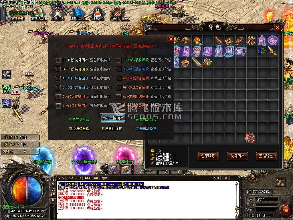<> <3./scolor=150><然后开启沙城捐献,以及狂暴之力,沙捐赠送自动回收,以及PK变异BUFF。/scolor=251>\