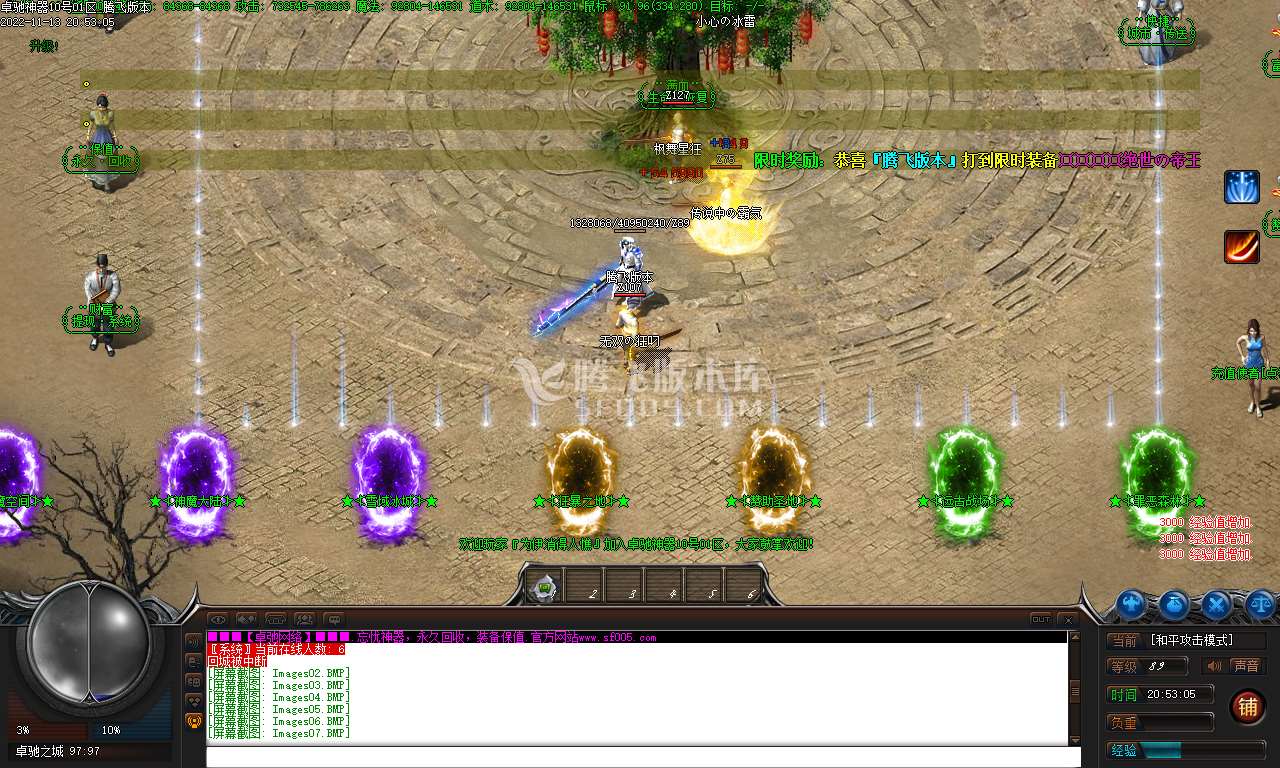 等待区时间:23:00 09:00 13:00 18:00 21:00 开区越晚刷怪时间越短 BOSS刷怪时间:120 120 110 90 80分钟