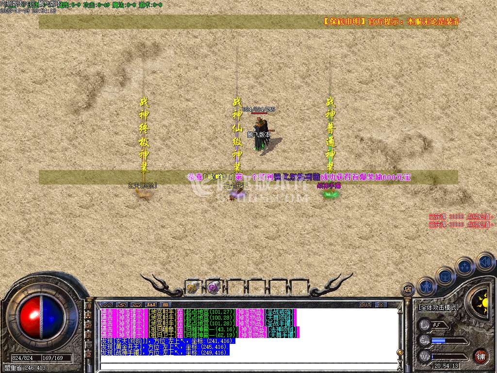 版本介绍 起点战神,地图全免费,无会员、无沙捐、无任何强制消费,一切靠打。