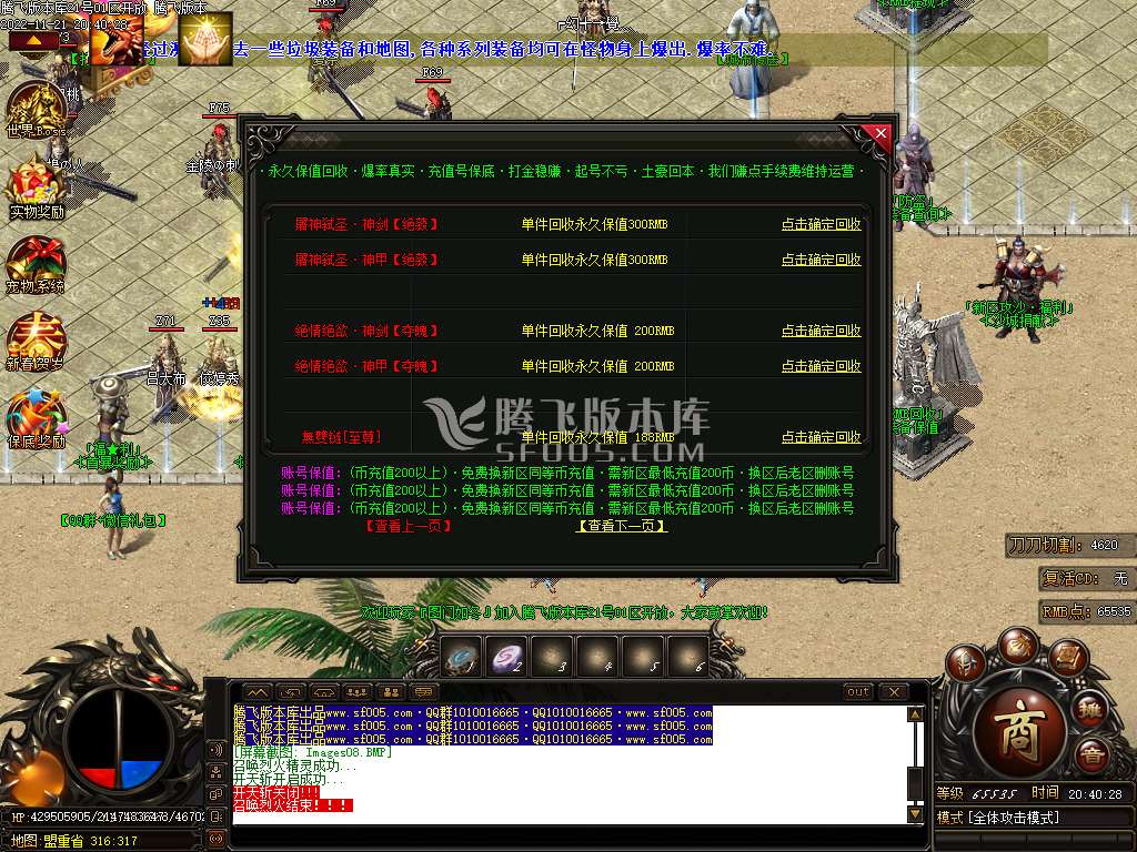 赞助玩家·免费送5转·直接下火龙大陆·五转地图@怪即可·币、装备都能卖钱!