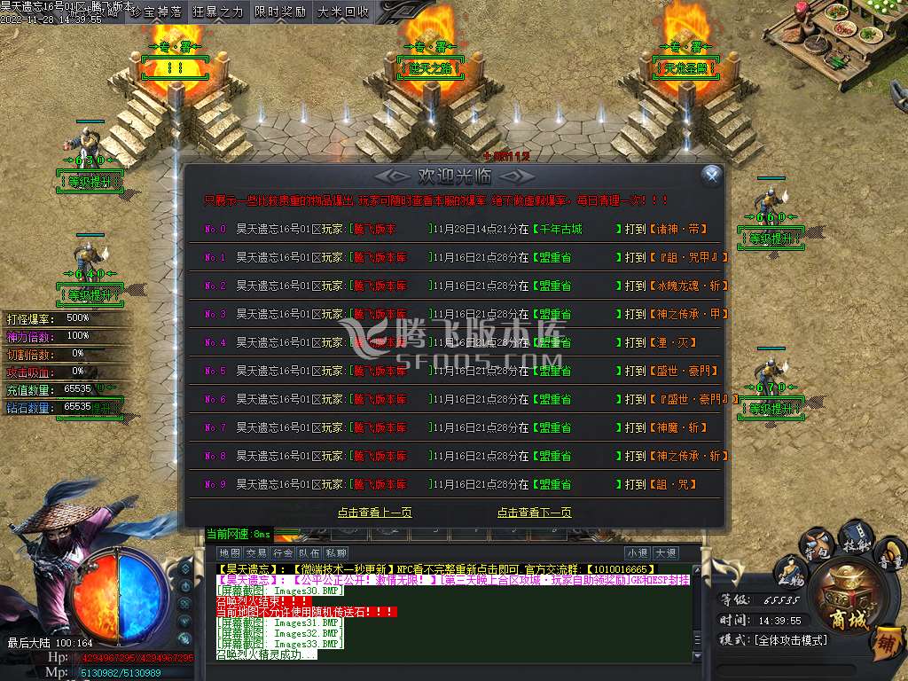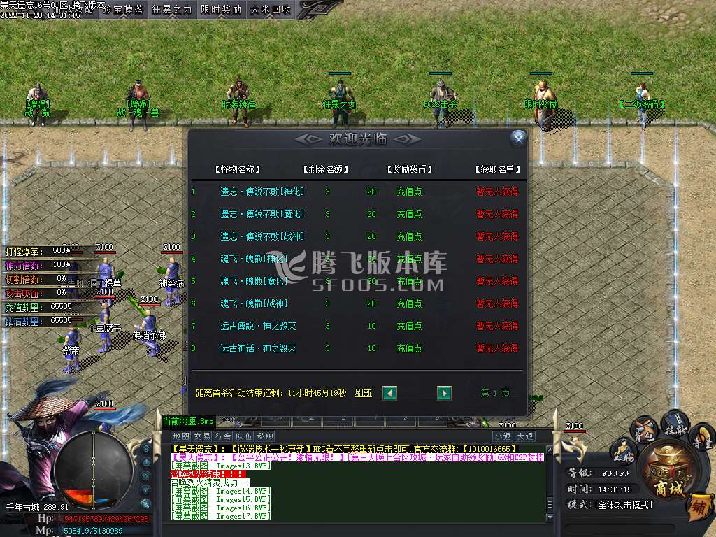 仙莲 战鼓 时装 称号 等这些都有地图 终极BOSS比较多 刷新块