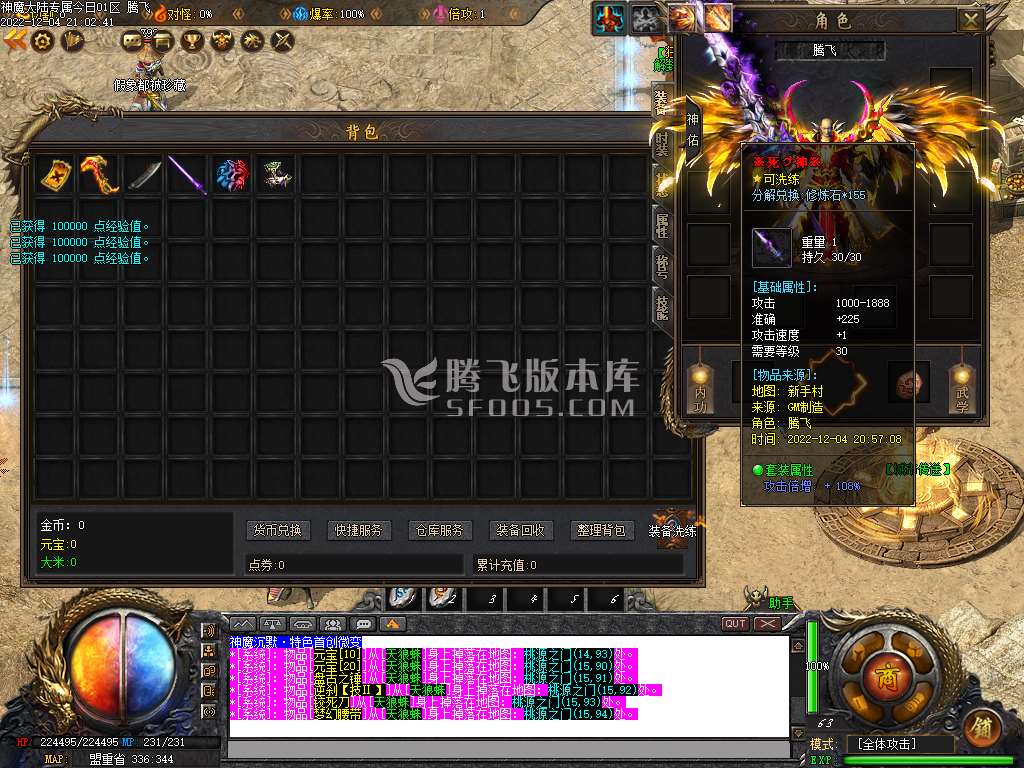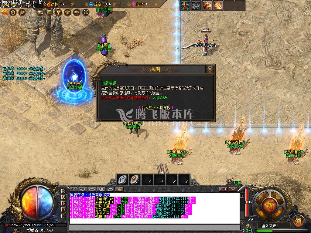 12月神魔大陆专属单职业商业版本库-四大陆-大背包-带假人光柱-自动回收 [修改