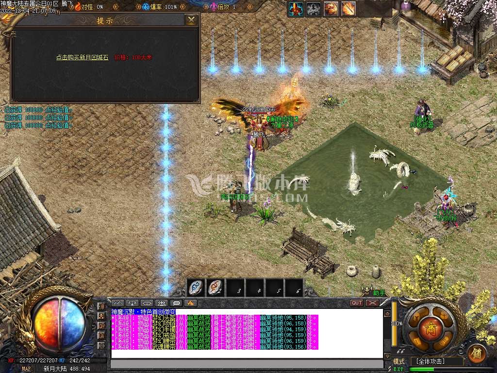 12月神魔大陆专属单职业商业版本库-四大陆-大背包-带假人光柱-自动回收