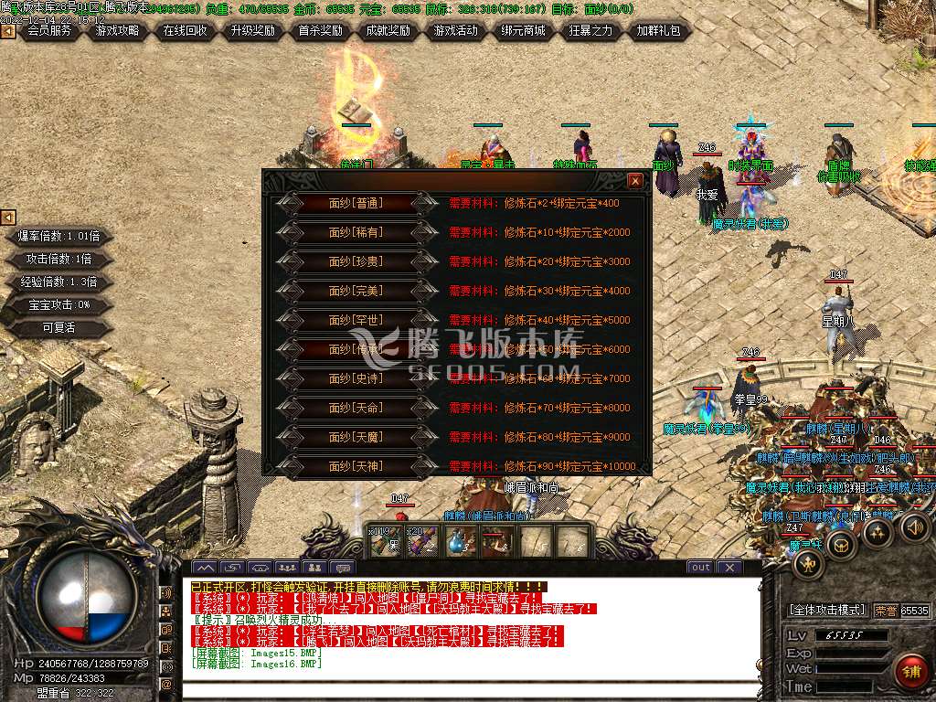 【材料获取】:BOSS必爆,小怪几率爆,任务每天会给一部分荣誉值和绑定元宝.绑定元宝商场也可购买