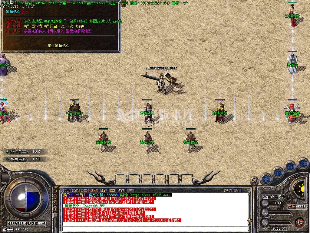 15、【沙捐花园】在土城右边,沙巴克成员免费进入,其他成员需开通沙捐进入,也是打宝好地图。