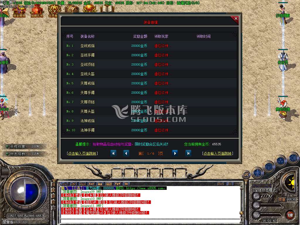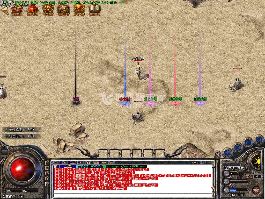 6、老区每周2,4,6进行沙城战争,奖励2000万金币+沙捐金币。沙战结束后沙老大去土城沙城奖励NPC领取。