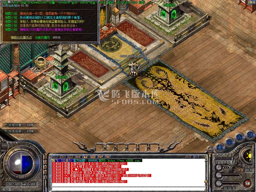 4、【精绝古城】一共有8层,7层NPC可以进入顶层,最顶层凭”弑龍凭证“进-弑龍神殿,地图是终极地图,进入方法在游戏上方(会员)高级地图查看。