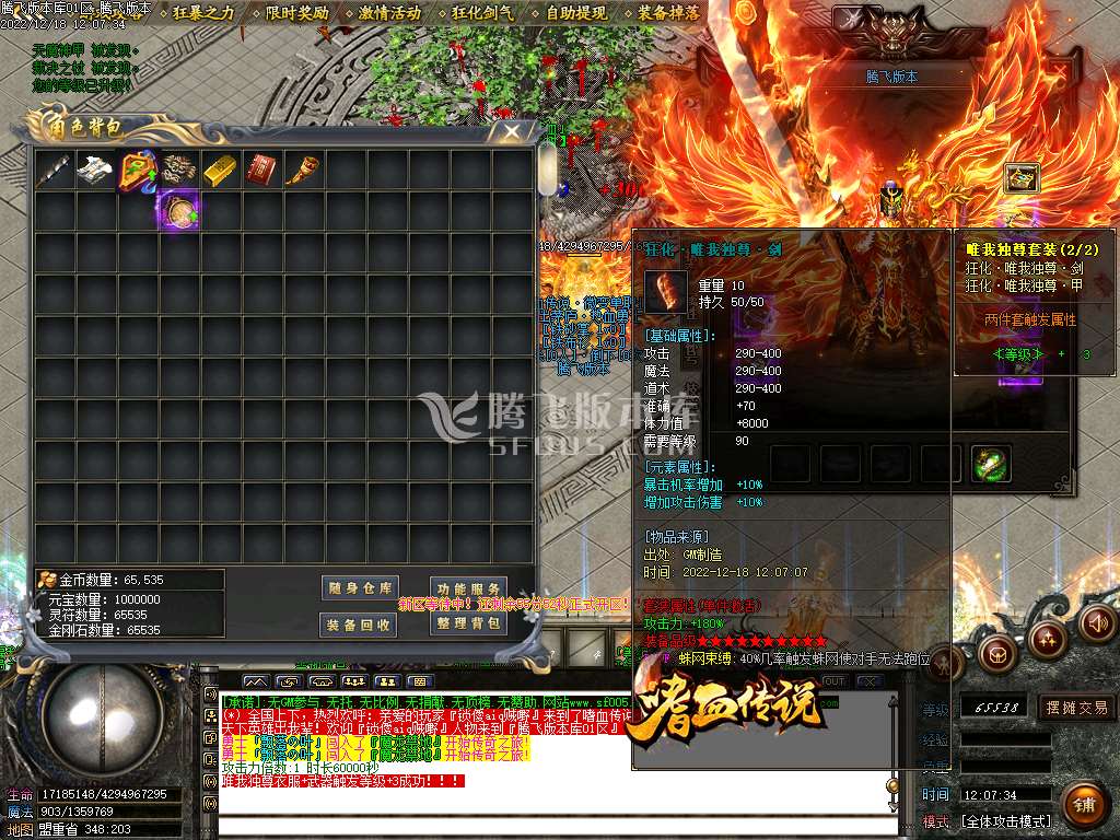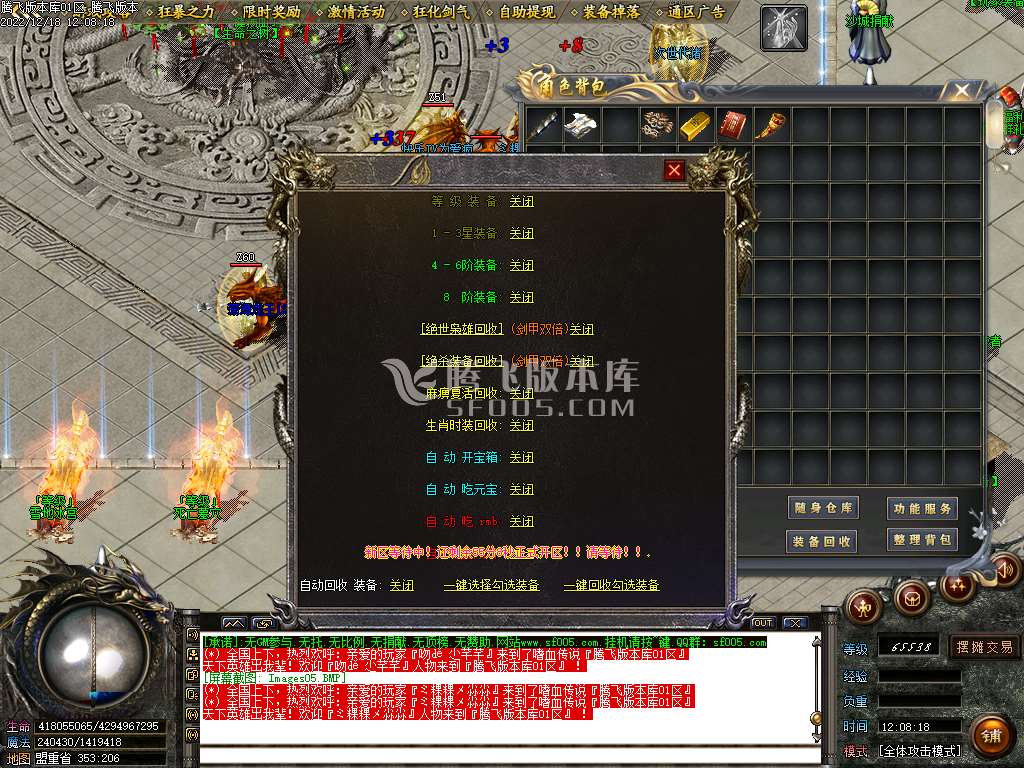 12月嗜血传说公益单职业商业版本库-带假人光柱-自动回收-五行塔-装备进阶
