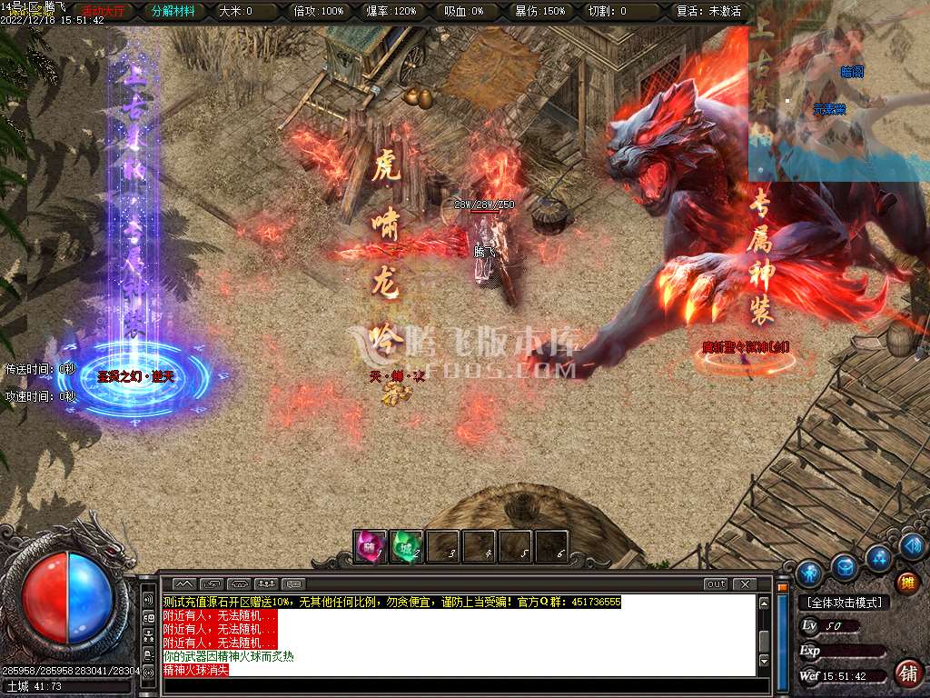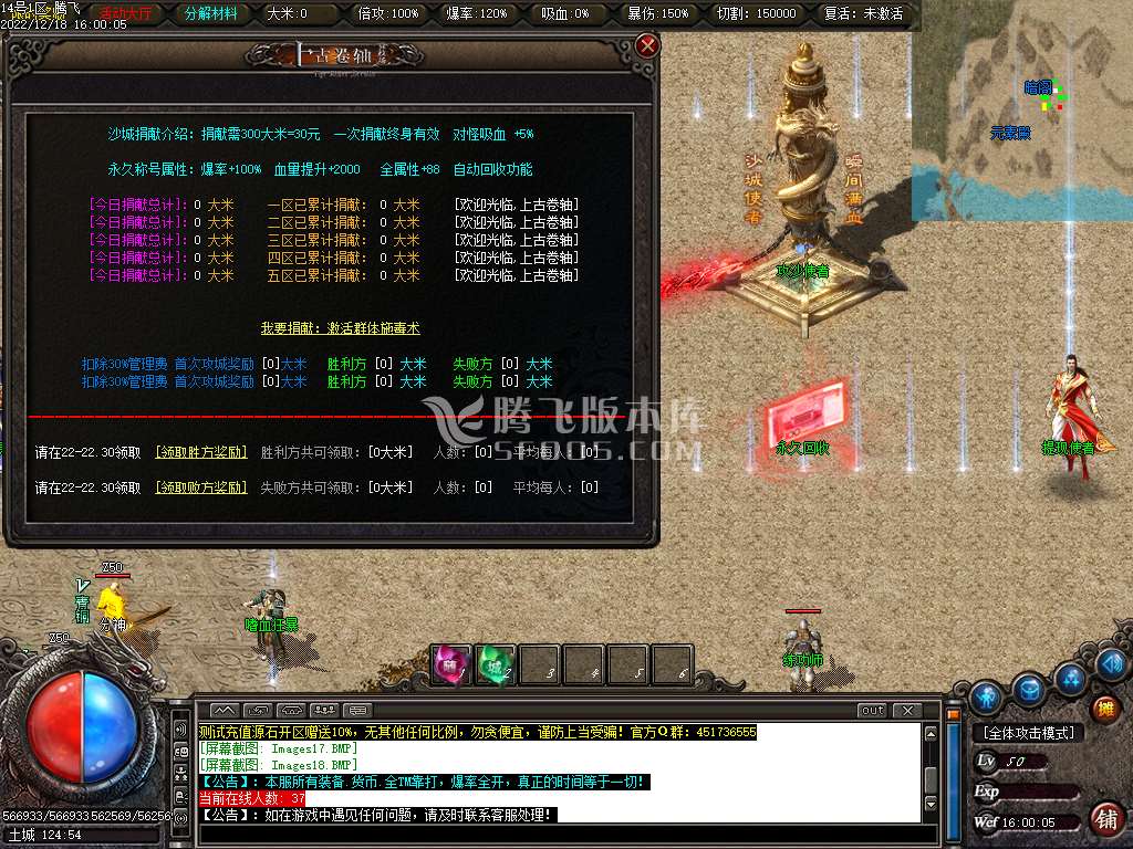 激情战场:合区攻沙后22.05分复活点刷新一只帝兽,开启时全服提示.