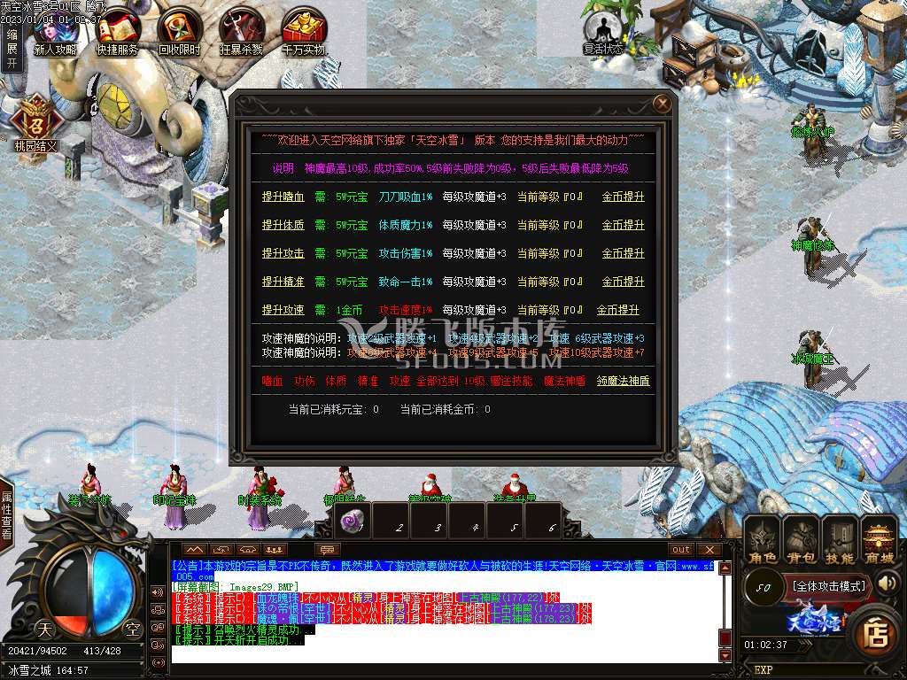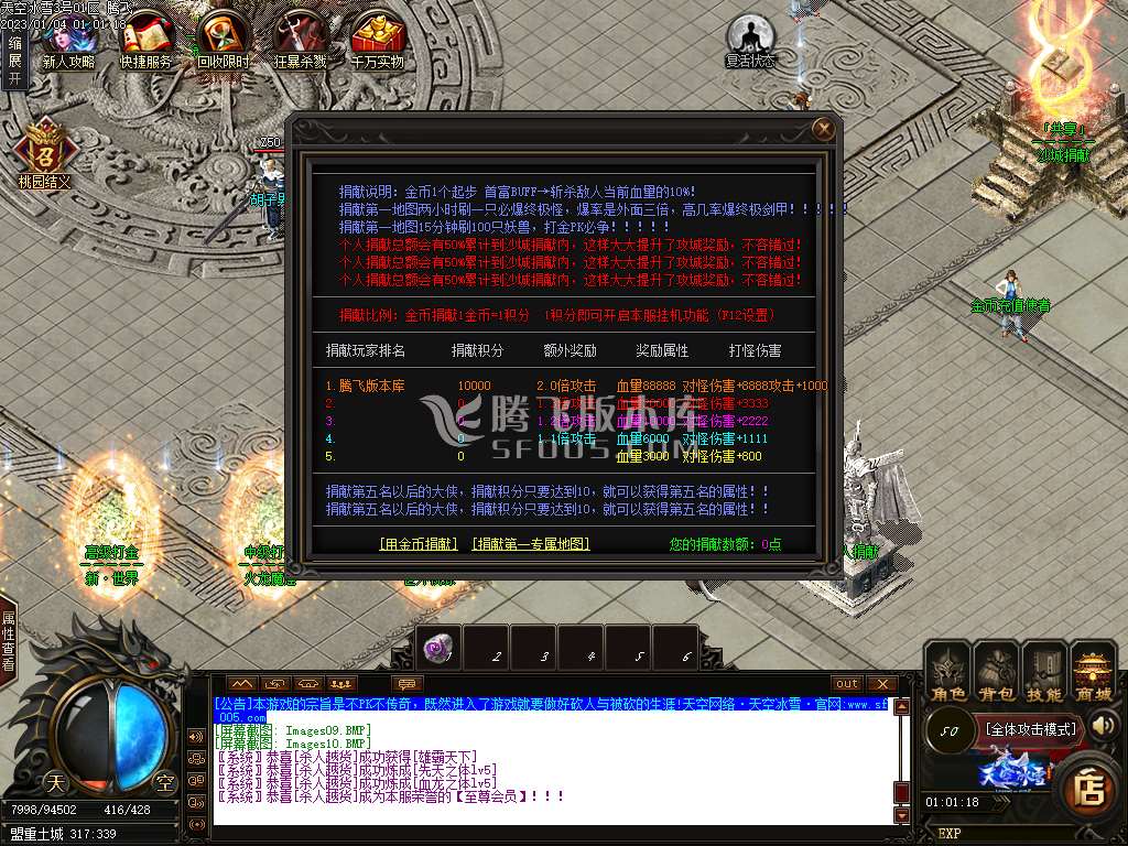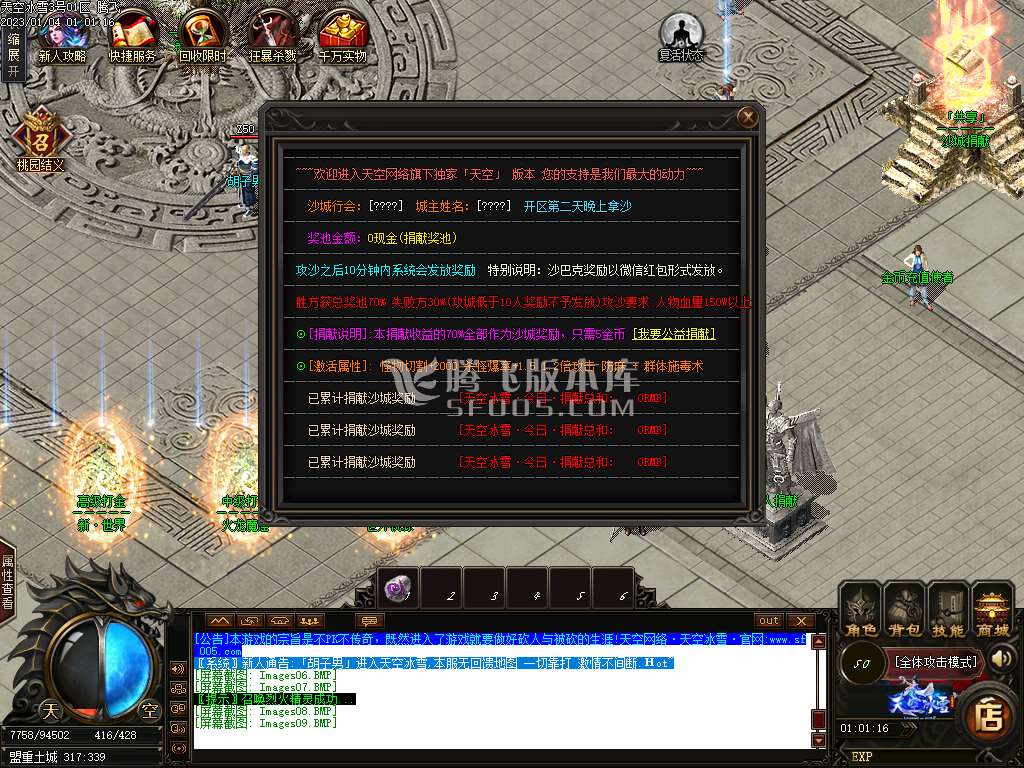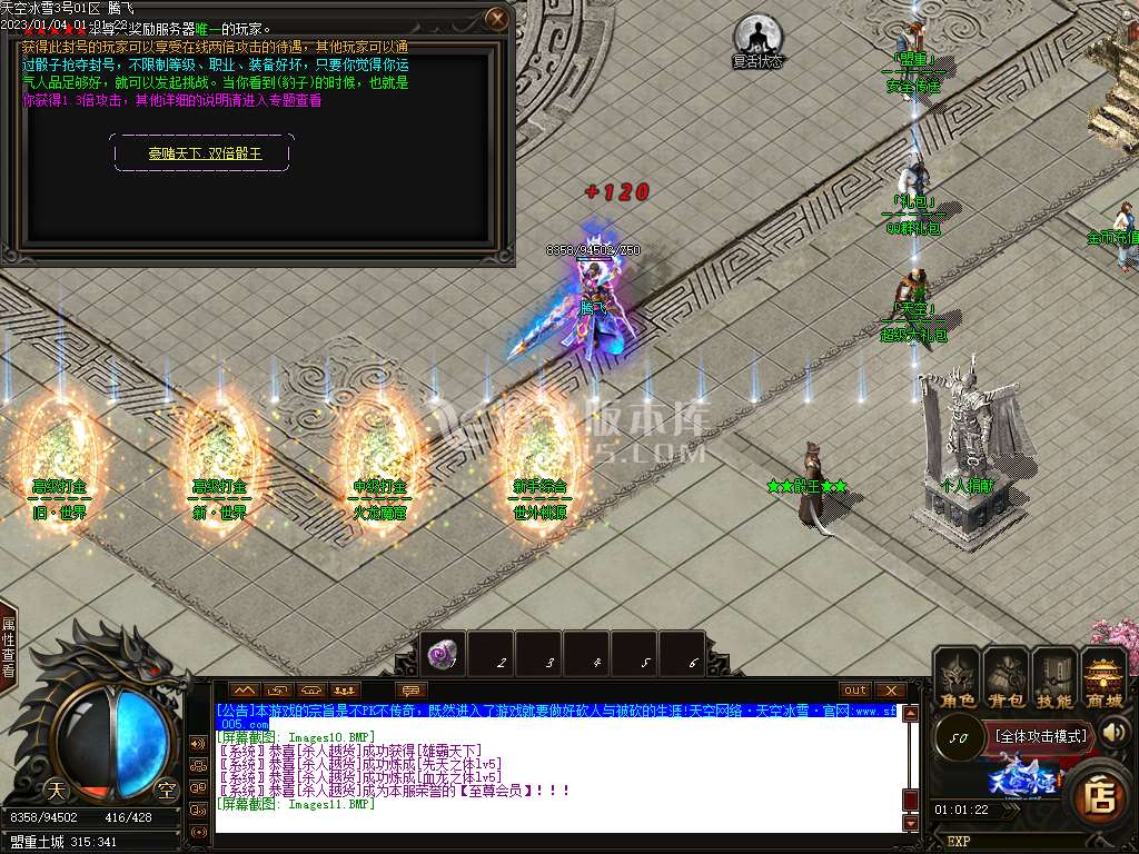 01月天空冰雪单职业商业版本库-带假人光柱-自动回收-沙城捐献-血龙之体-技能升级
