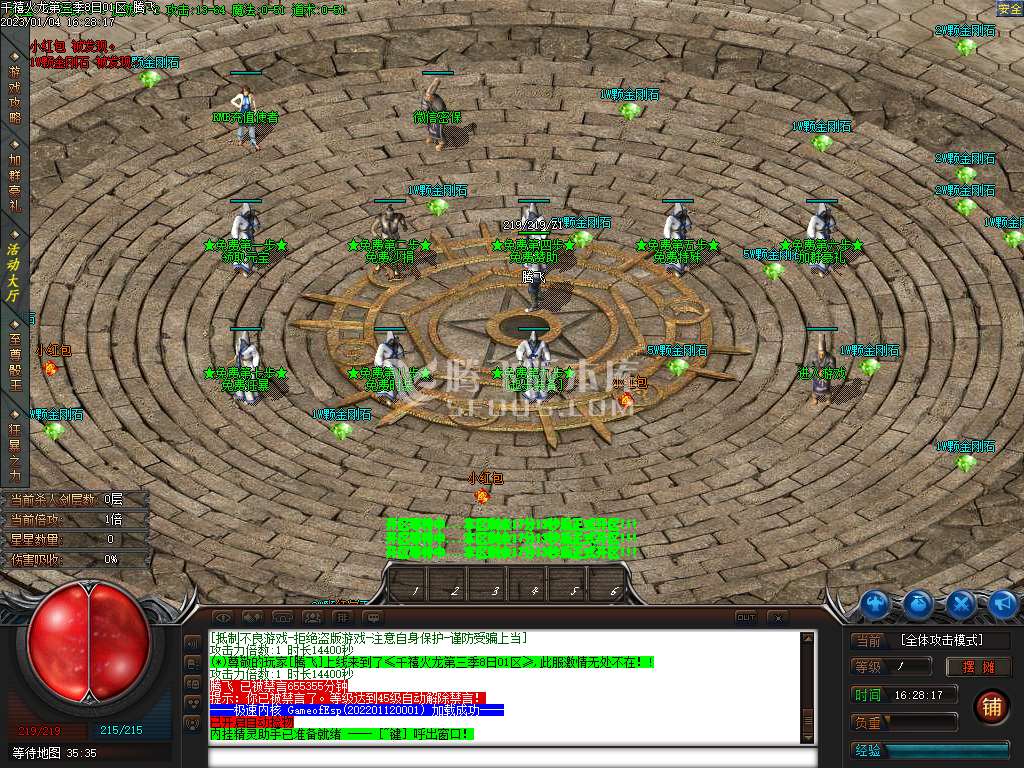 01月1.80天禧火龙上岛三职业商业版本库-带假人光柱-大背包-沙城捐献-狂暴之力 [修改]