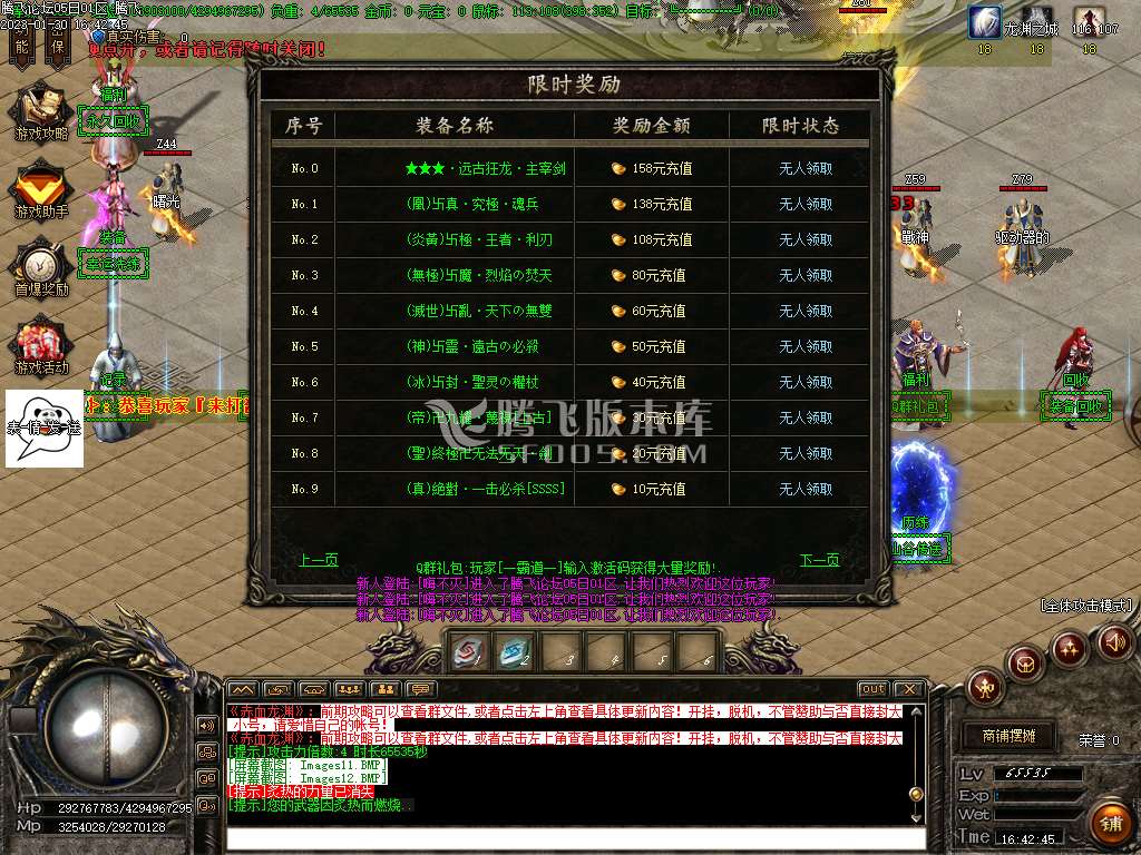 重要提示:此次更新,加了太多大陆,地图,装备,BOSS,以及玩法,包括《全屏冰冻神技》,《全控神技》,《全屏透视神技》!!!!!后期大陆尽情体验!!!!