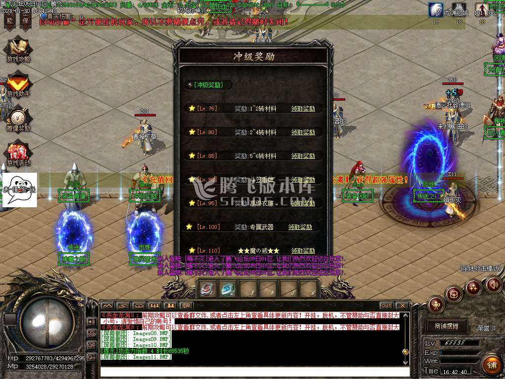 这个时候达到110级,回土城,领取冲级奖励,赠送护盾,面巾,全部带上