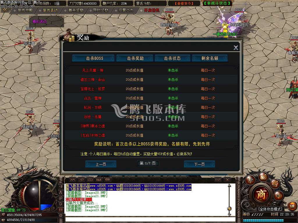 VIP成长值:个人每日首杀必得1120点 屠魔神塔怪物必得1点 奇遇宝塔BOSS必得20点 寒冰大殿以上地图BOSS几率获得0-100点 (购买沙城捐献击杀可获得2倍成长值)