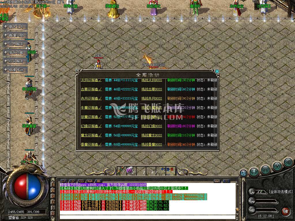 02月1.76金币沉默复古三职业商业版本库-带假人光柱-自动回收-提升元素-BUFF三神套