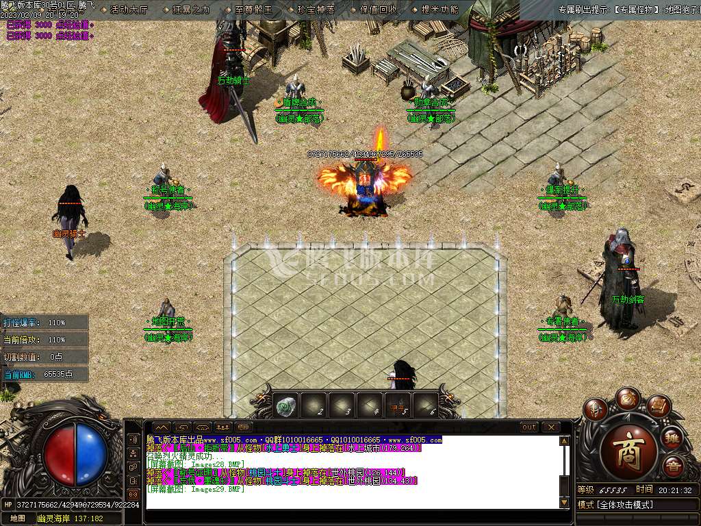 4.神豪玩家充值1000元.可使用专属直传功能.哪里刷怪飞哪里.更有超级礼包.赠送攻速.百分币切割专属道具...