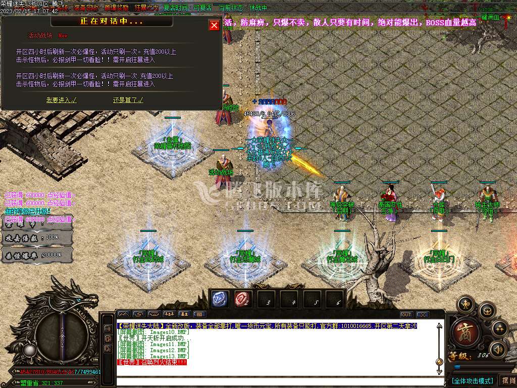 04月荣耀火龙III之龙腾盛世三职业商业版本库-带假人光柱-自动回收-精炼剑甲