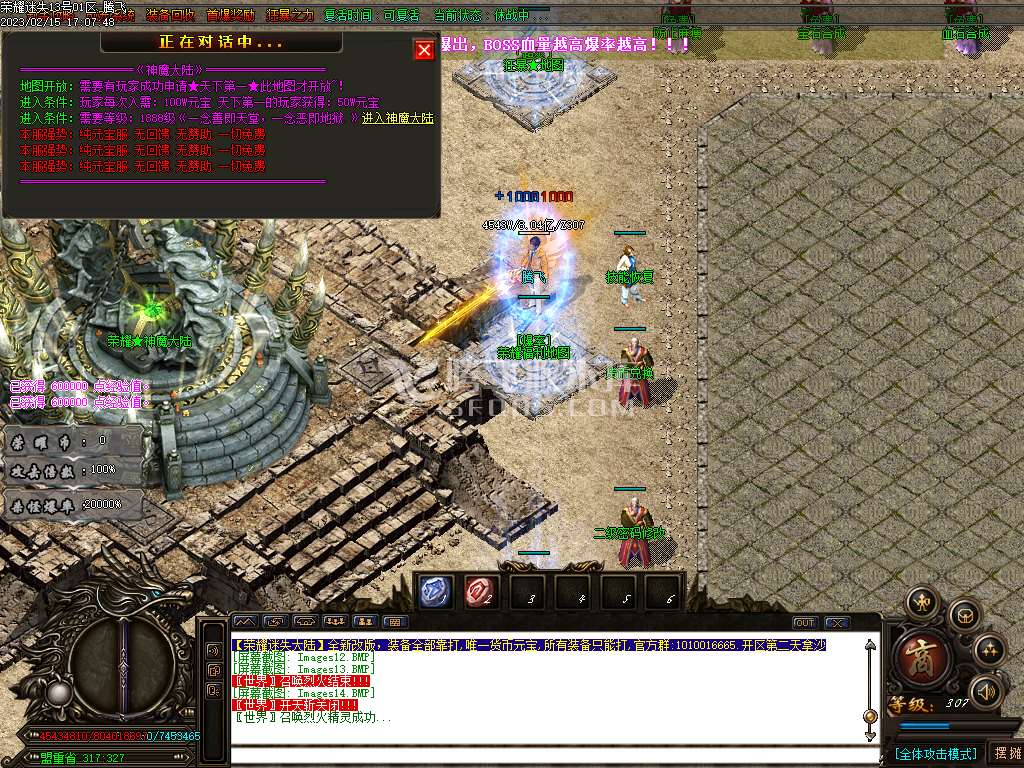 02月荣耀迷失专属神器单职业商业版本库-带假人光柱-自动回收-多大陆-神魔飞升