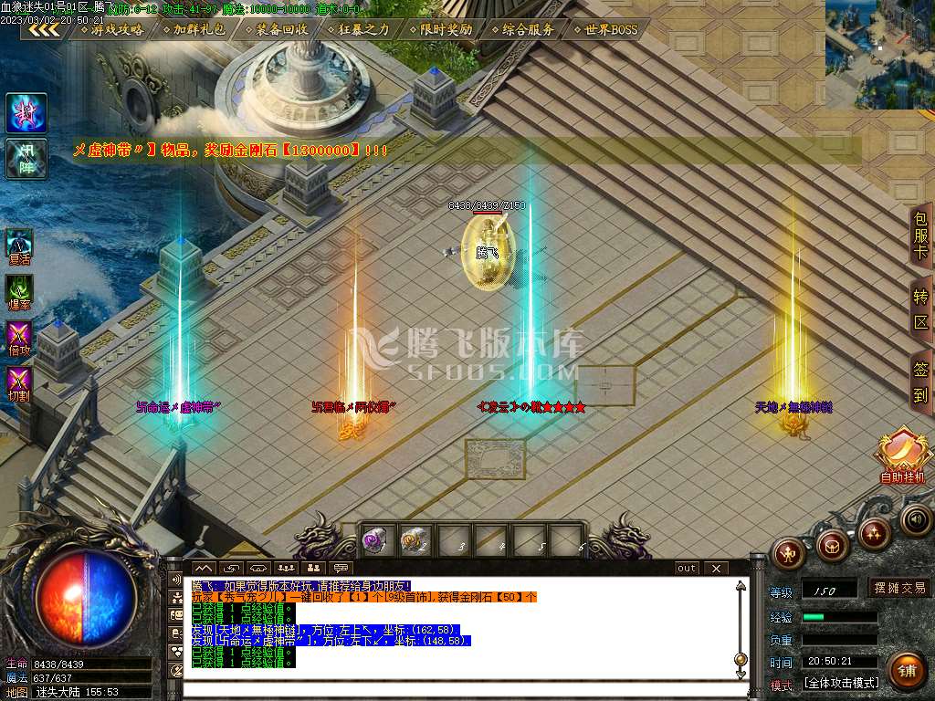 4. 金刚石 所有怪物掉落装备都可以兑换出金刚石 充值100元=1亿金刚石