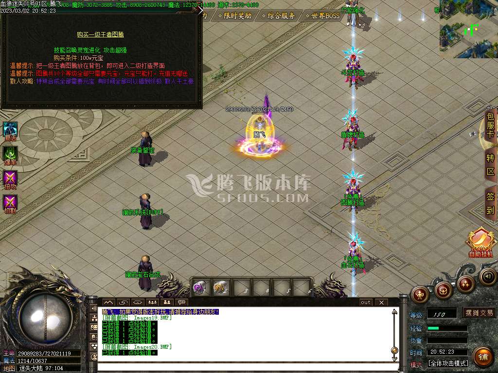 升级途径:1-120泡点 120-180土城右下角 180-200 封魔 200-205 魔龙城 205-210卧龙山庄 210-215极限之门 220神葬场 230圣蛮荒