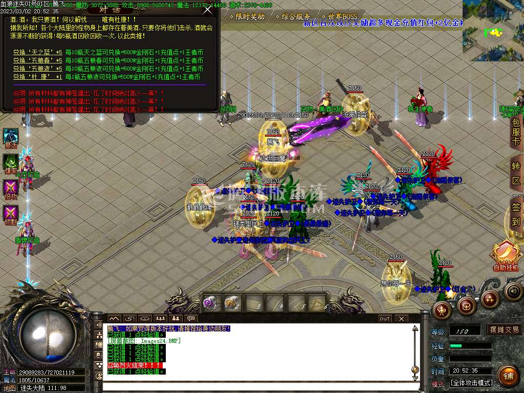5. 五粮液 五粮春 天之蓝 全服大小怪都有爆出 5*酒=3王者币+1充值点+500W金刚石