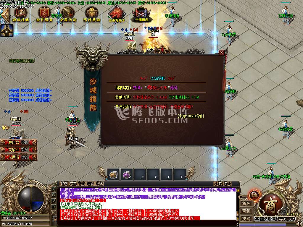 <小资玩家建议沙城捐献一次,永久获得爆率及刀刀切割1%,合区也不消失!>