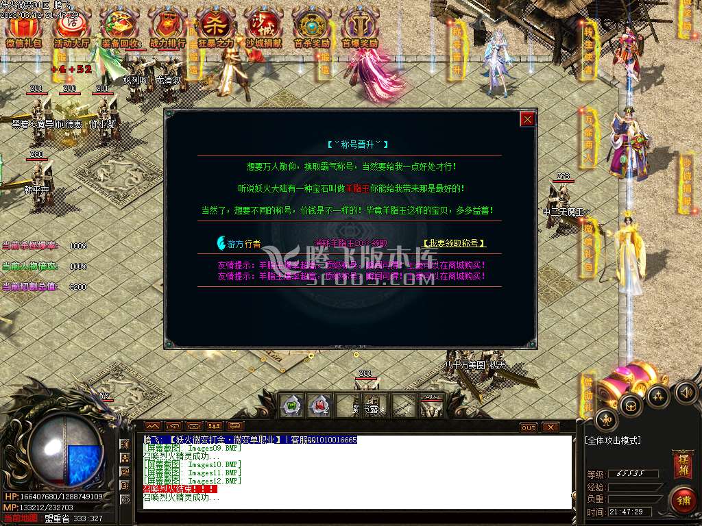 <4、土城右上方:封神榜NPC 一定要捐献,能够很大程度增加爆率,另外就是称号增加爆率,称号越高,爆率越高>