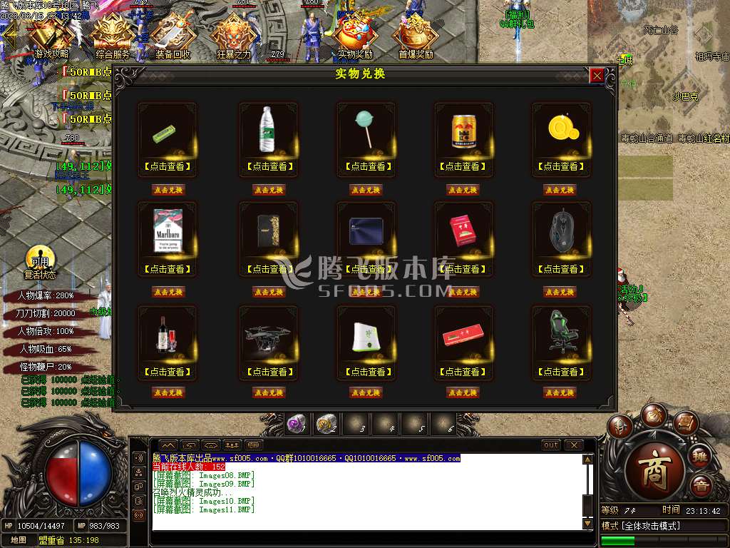 打到实物兑换成金币一样可以领取本服礼包,捐献,狂暴,时装 等等