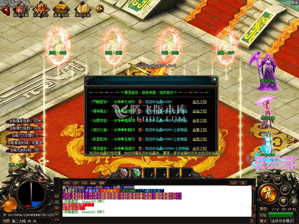 03月盛世浑源III神器激情单职业商业版本库-带假人光柱-自动回收-六大陆-神力合成