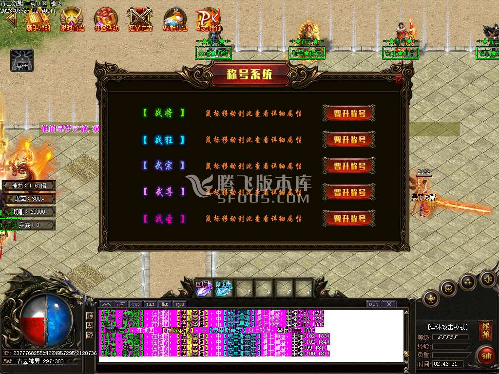 平民玩法: 领群礼包+升级奖励,打到材料先升级称号+切割,循序渐进 提升属性