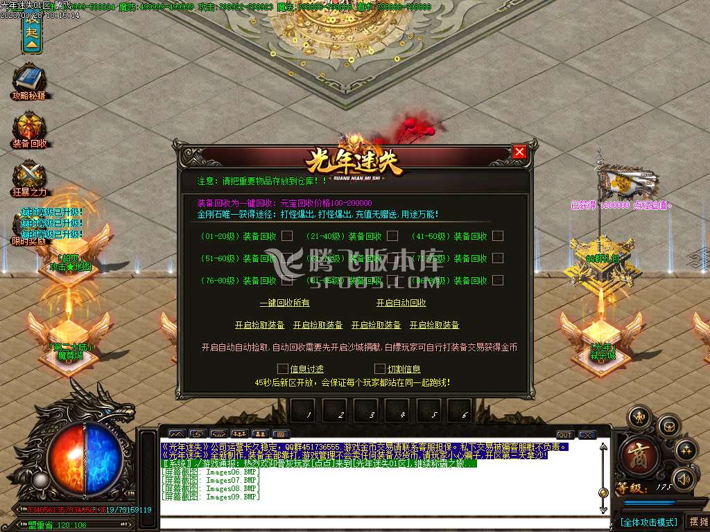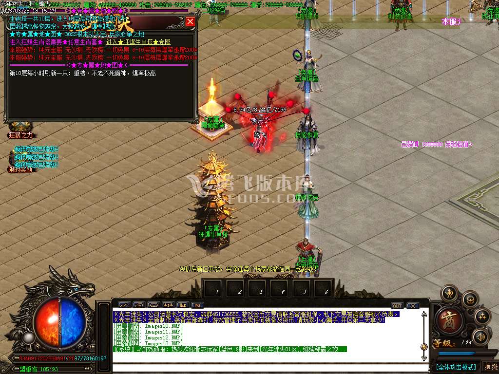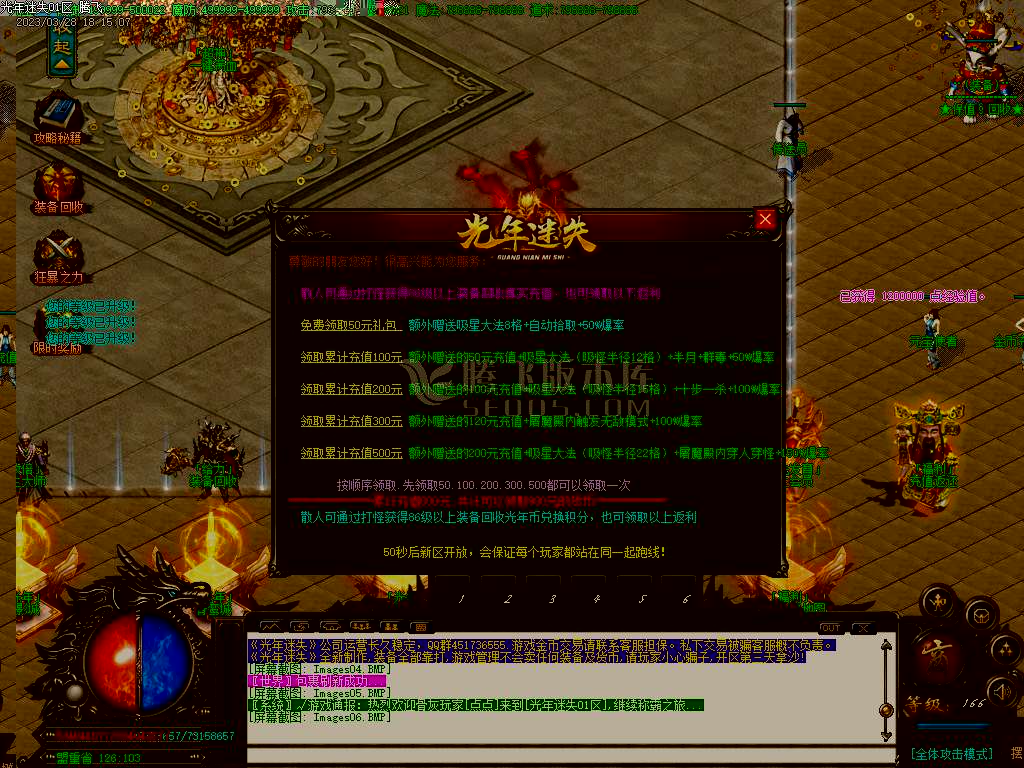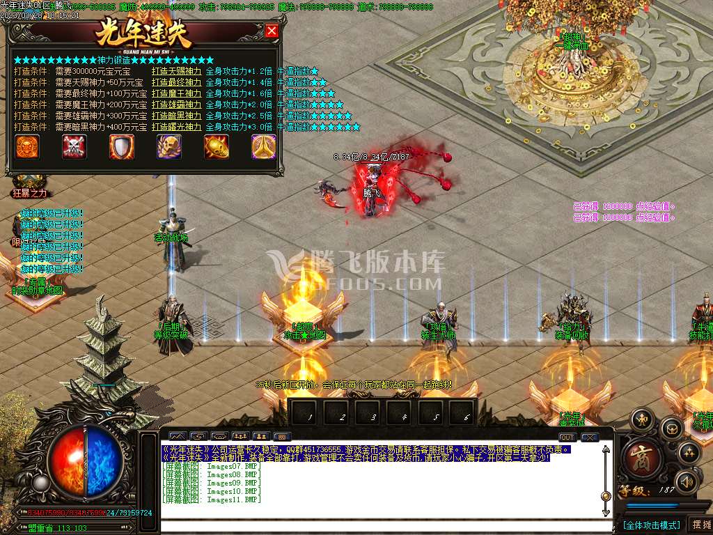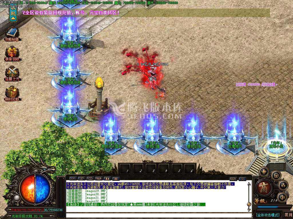 老区攻城奖励: 1. 8亿元宝18888光年币额外奖 励沙成员爆率提升50%、沙城主爆率提升100%