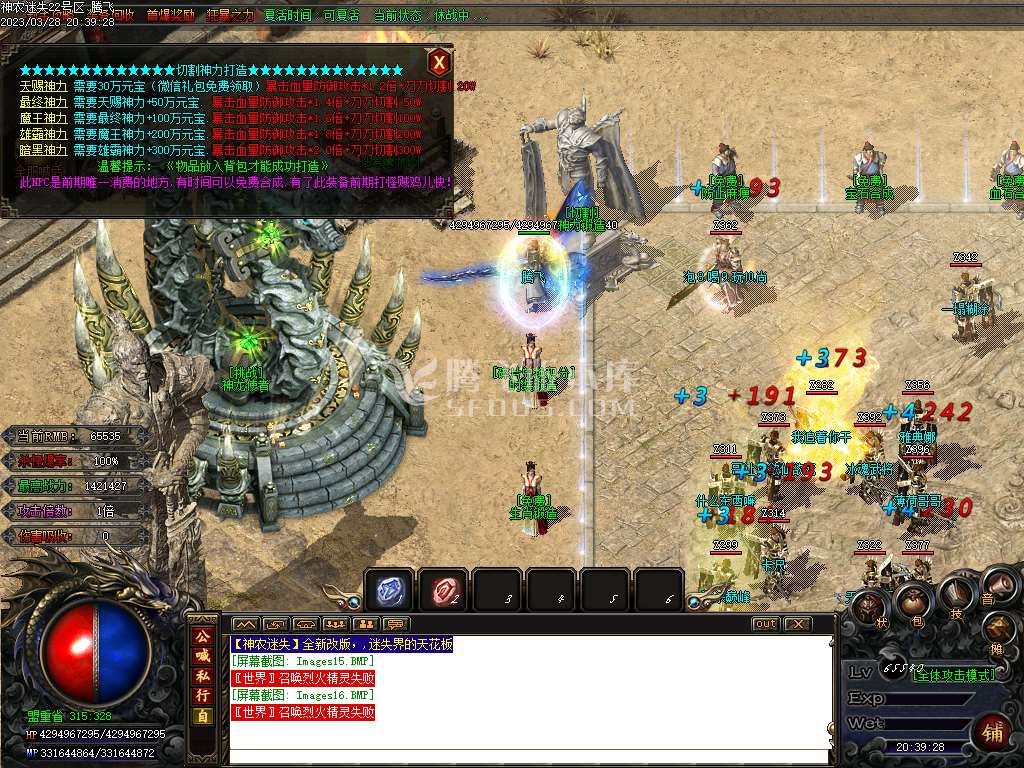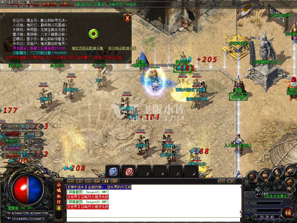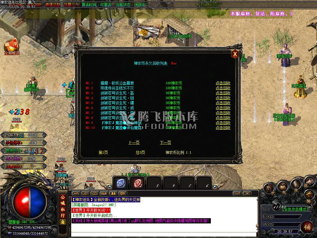 : 03月神农迷失无限刀激情单职业商业版本库-带假人光柱-自动回收-多大陆-神力提升