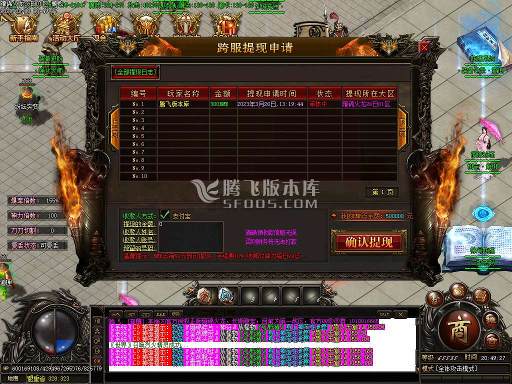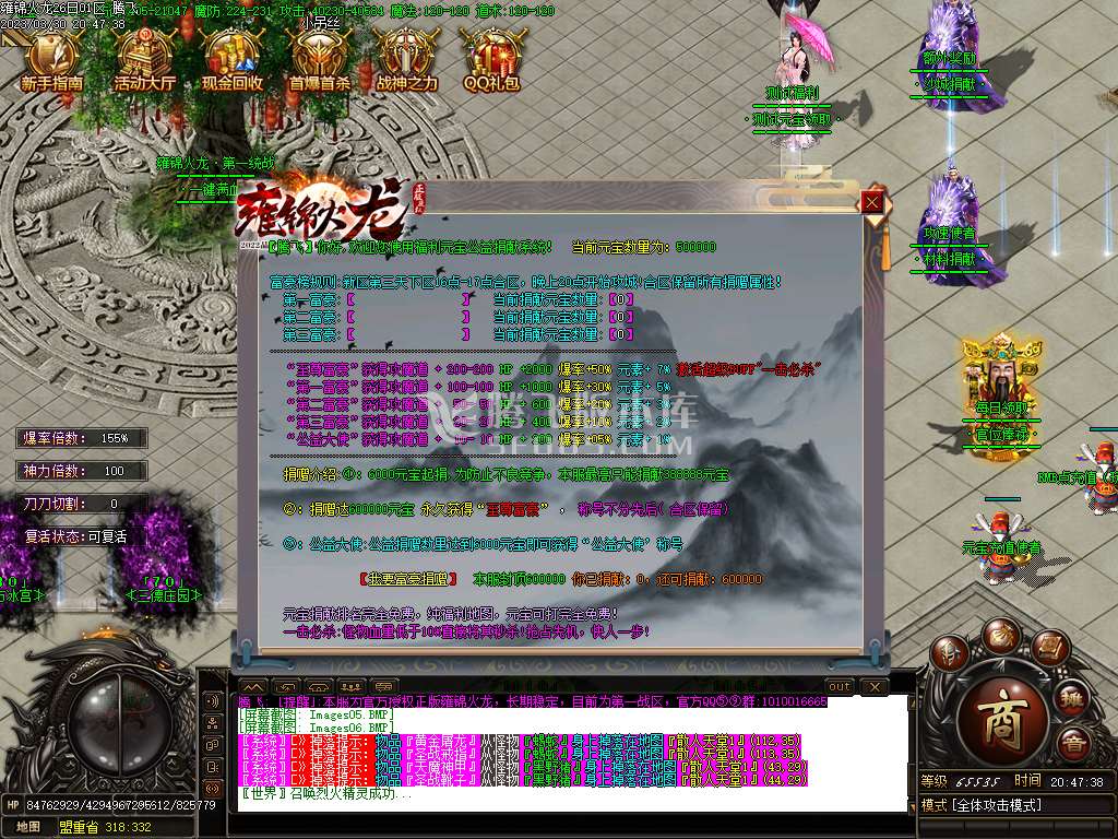 【玩法介绍】:充值26元,开狂暴+捐献.直接起飞.打材料摆摊+火龙灵石换RMB