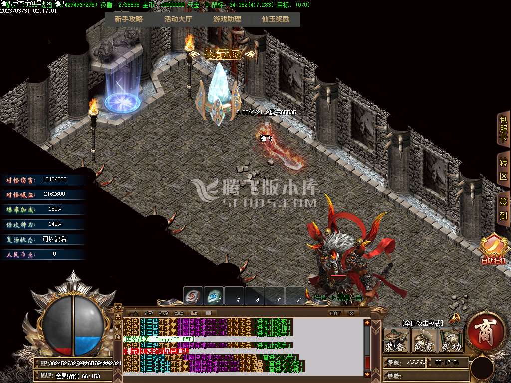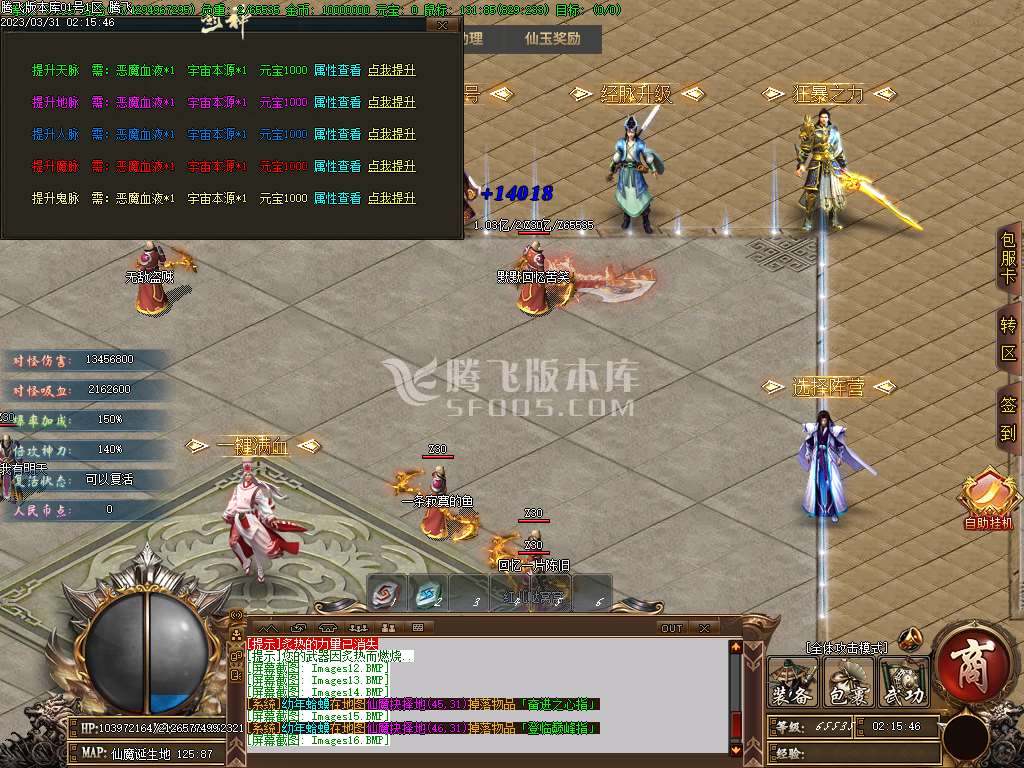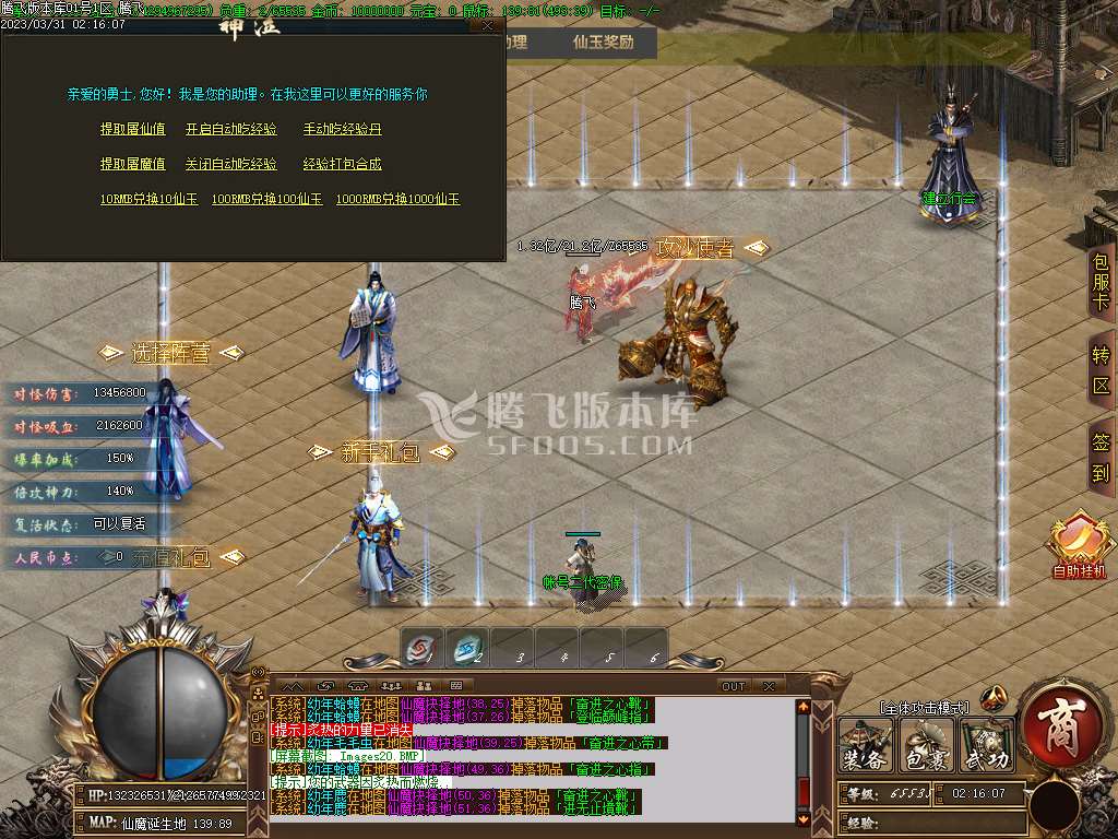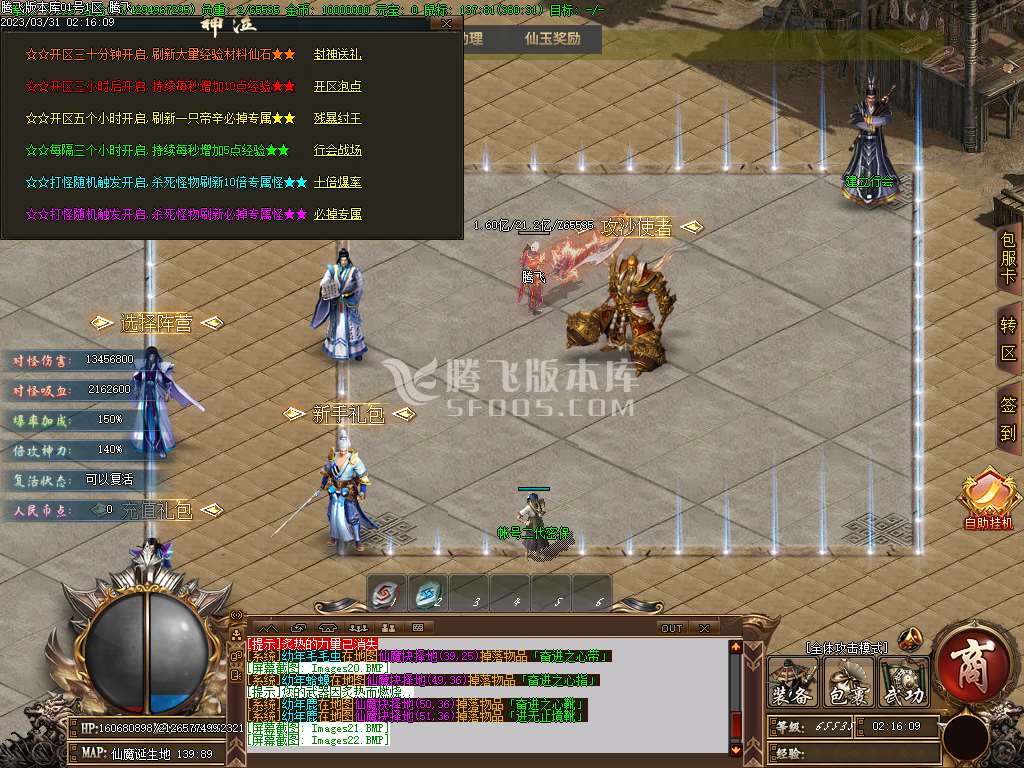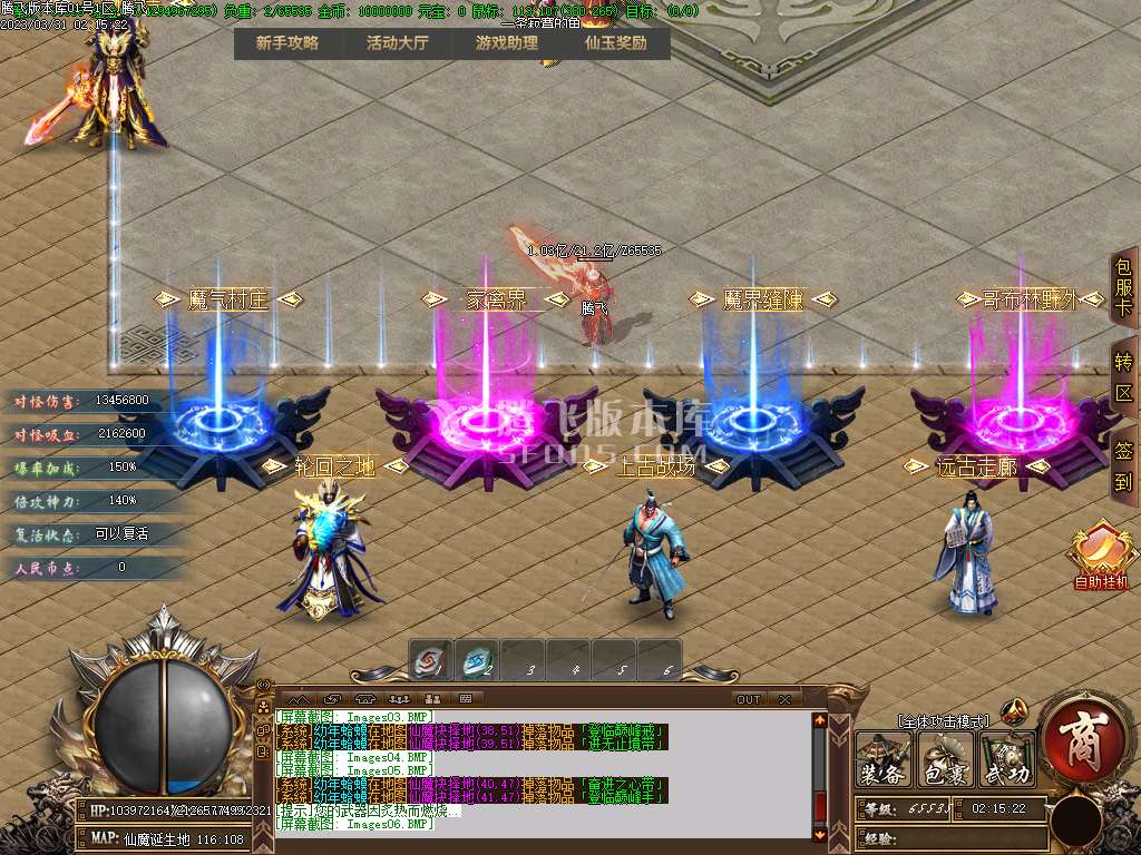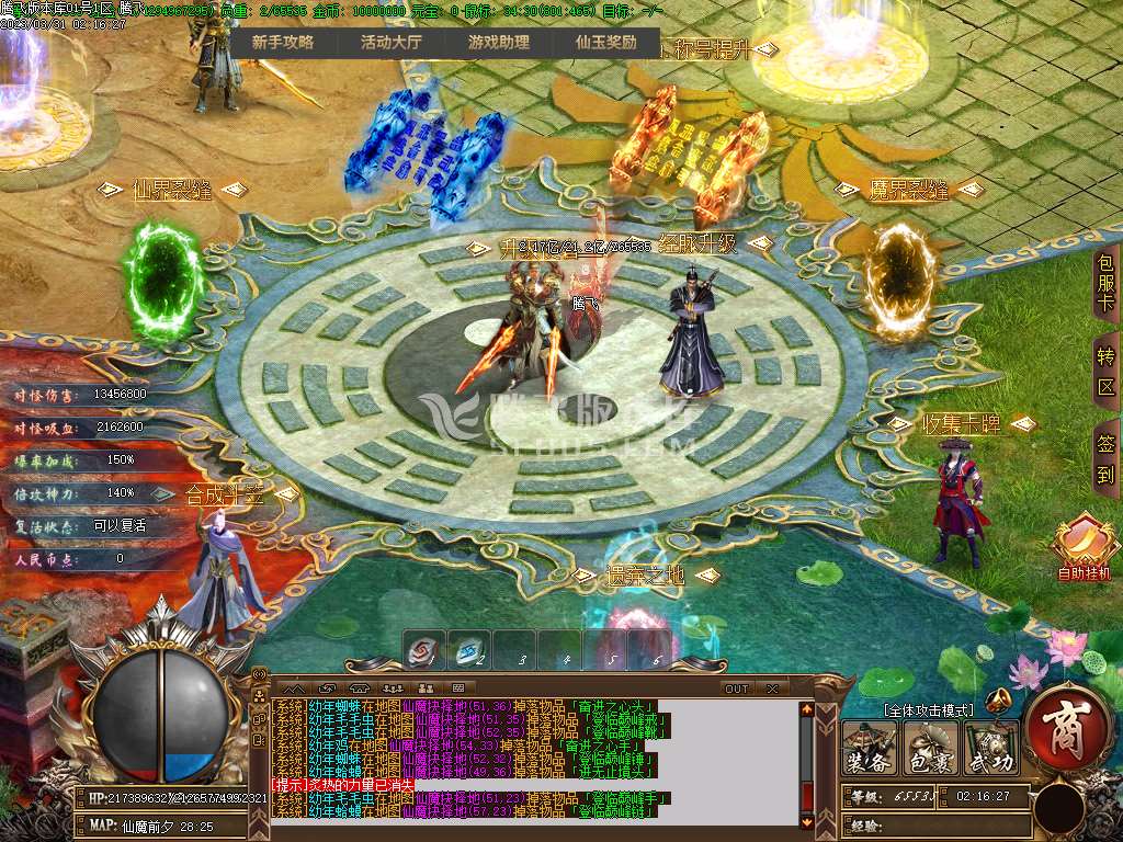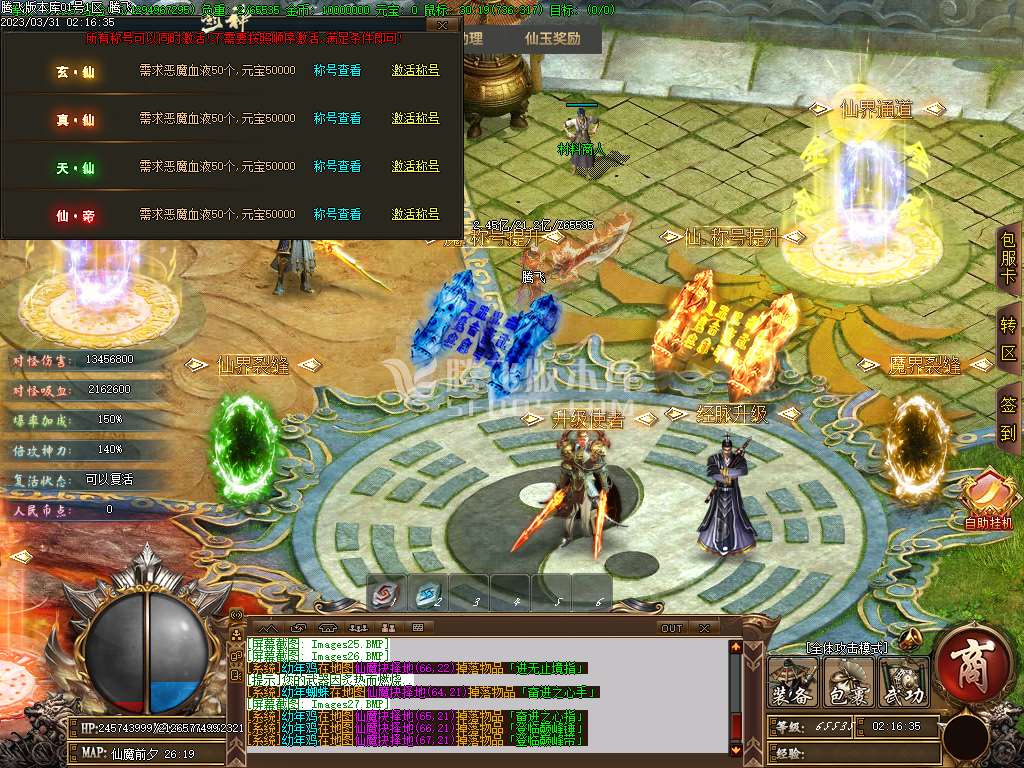 地图介绍:击杀仙族的怪物+屠仙值击杀 魔族的怪物t屠魔值