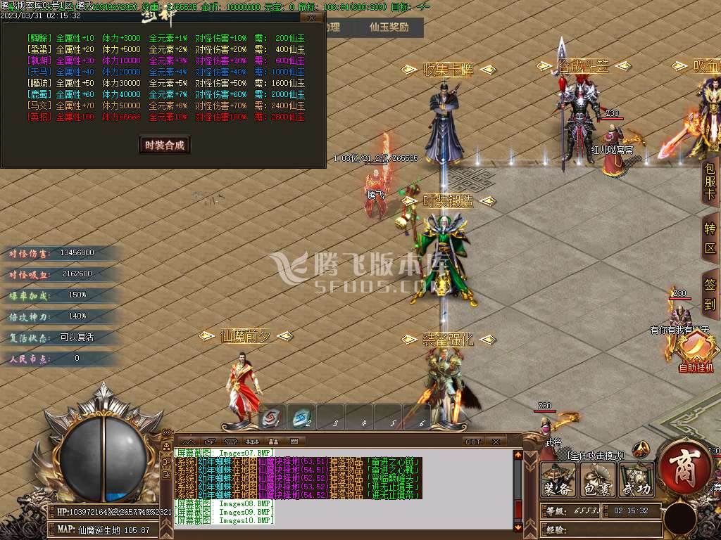 满时装560仙玉6级附带隐身满称号385爆率100% 满勋章300 附带超高吸血4级开始附带传送
