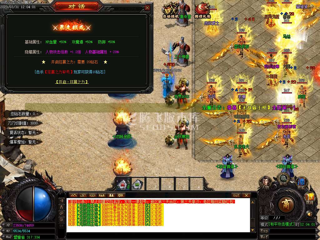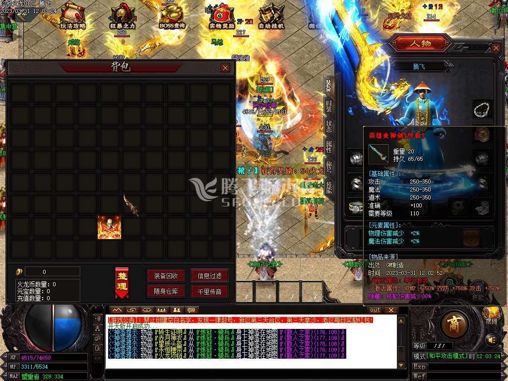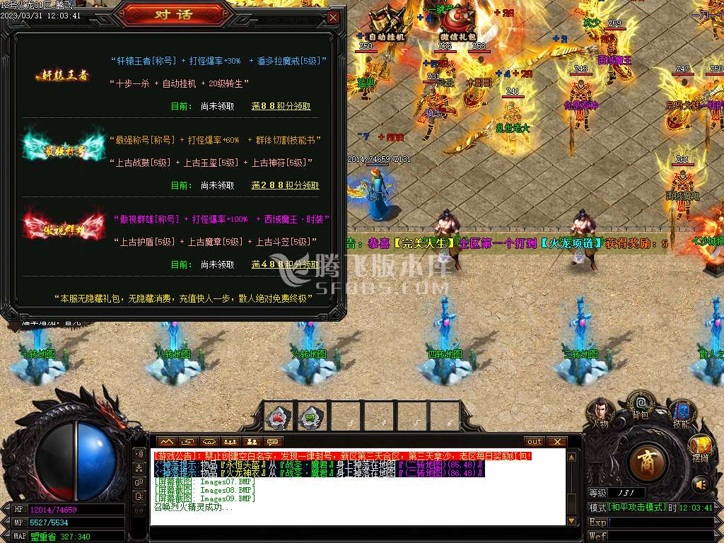03月英雄火龙微变单职业商业版本库-带假人光柱-自动回收-三大陆-登峰造极-五行阵