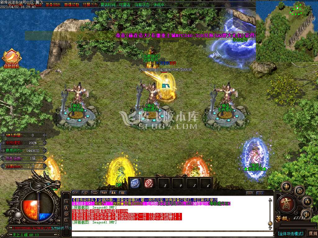 6.材料圣地+元宝圣地,地图扩大一倍,怪物刷新数量提升一倍(起号速度*200倍)