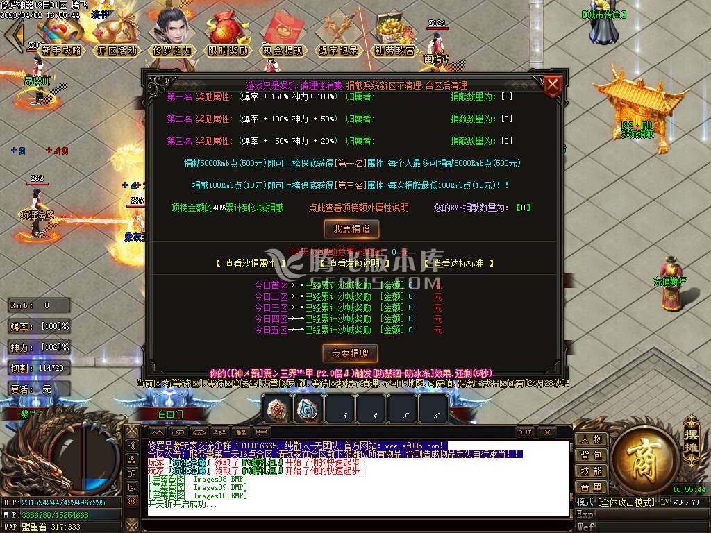 30元RMB点开启沙城捐献 5元RMB点开启炼狱狂暴