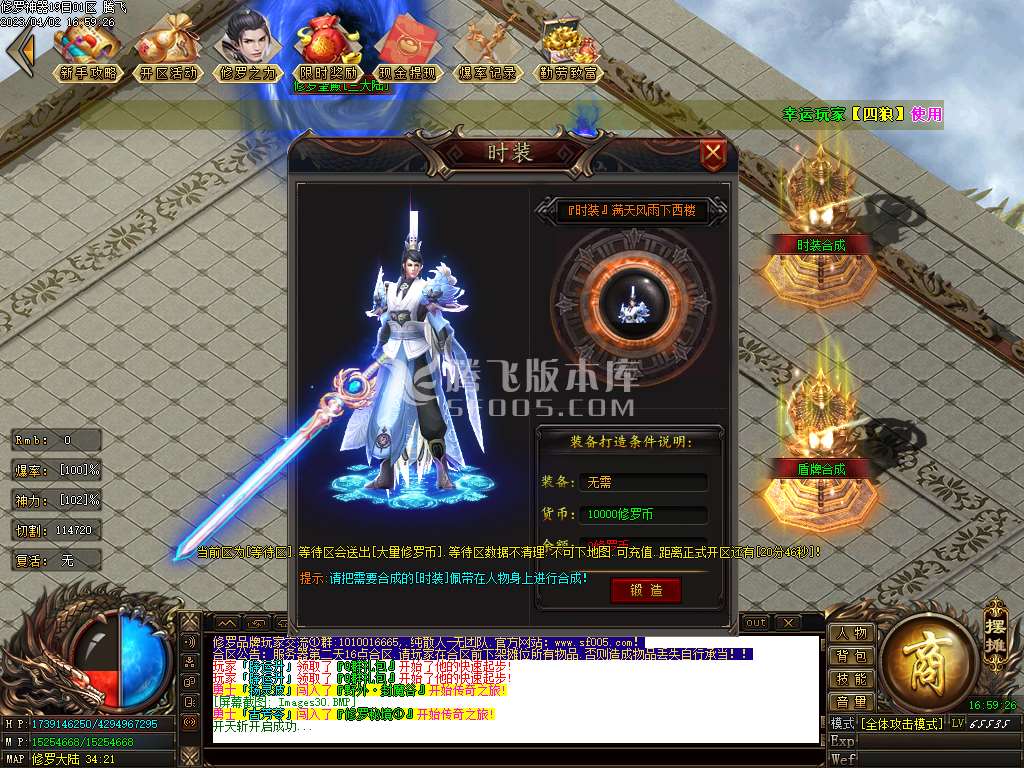 04月修罗神器单职业商业版本库-带假人光柱-自动回收-多大陆-奇门八卦-时装合成