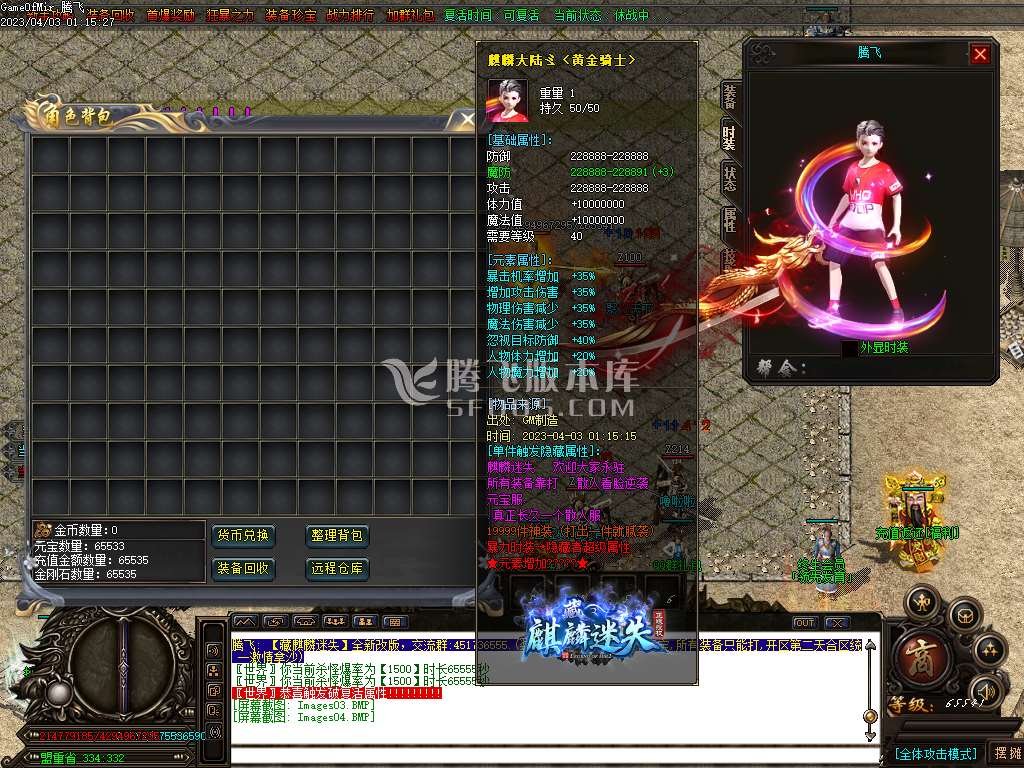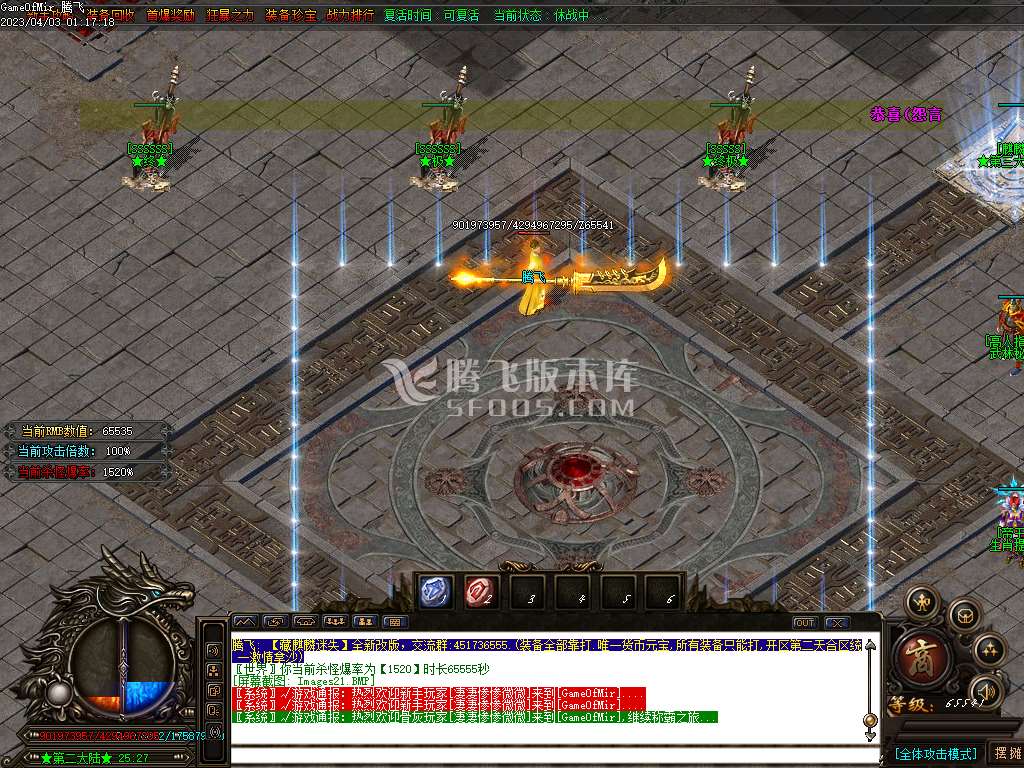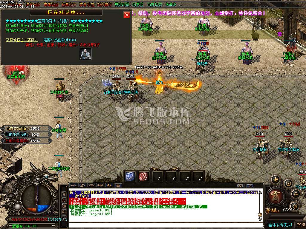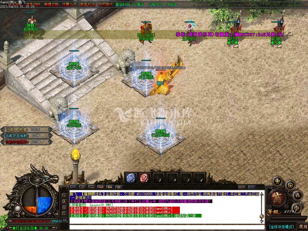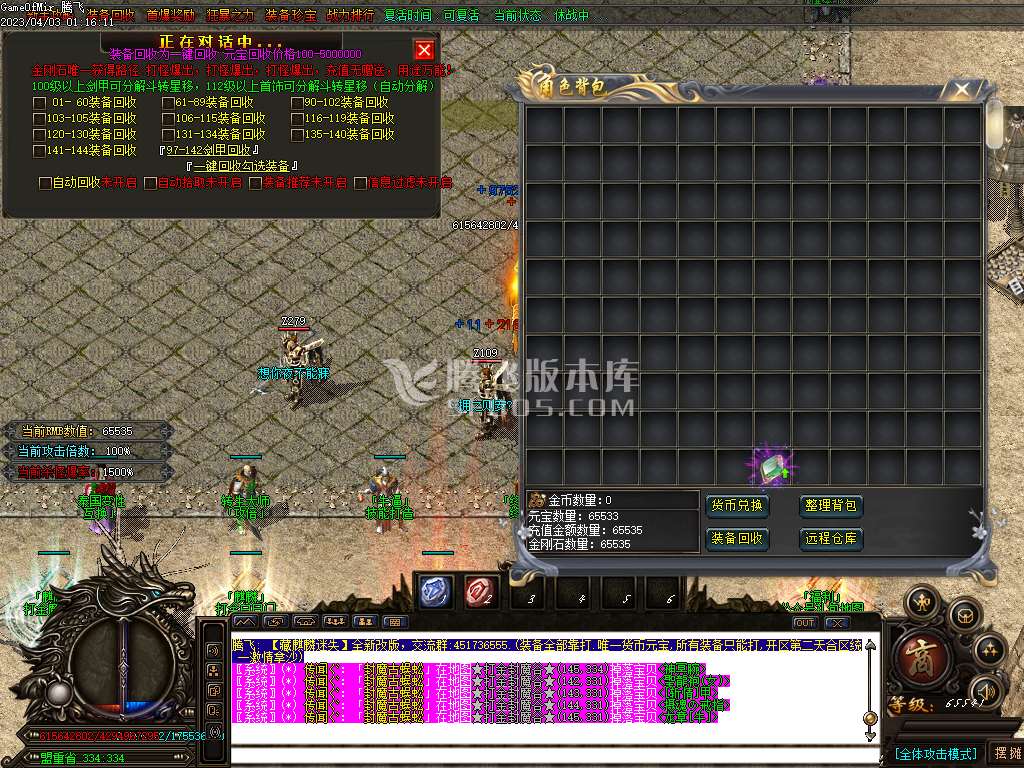 散人福利:新增新区活动,开区90分钟后开放,必爆回收35-100O装备一件(包含剑甲)!!额外还有几率爆出超级四格!