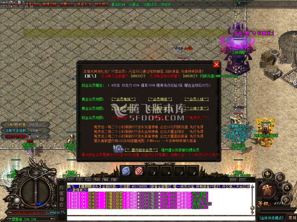 本服介绍:本服无回愦,赞助、捐献﹑土豪榜、充值地图、无地图,只卖会员,一个会员玩转全服,有时间亦可通关