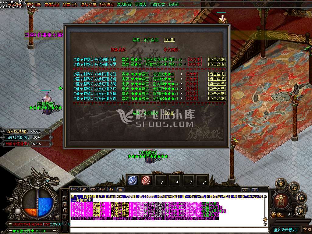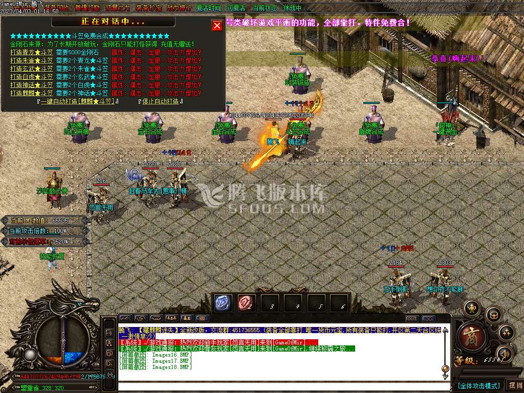 装备介绍:本服,斗笠,盾牌,时装,生肖,所有特殊,全部用金刚石合成(金刚石只能打,充值无赠送,散人好混)