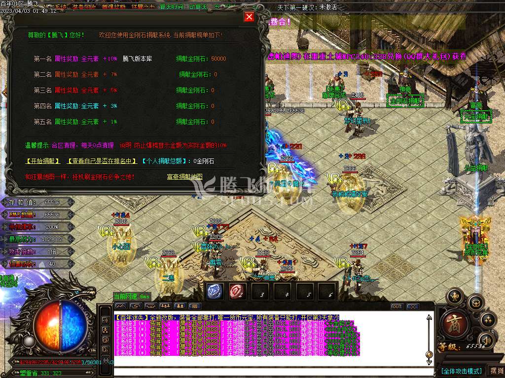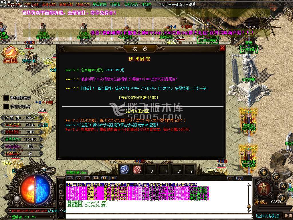 7. 土城右上角有元宝捐献和金刚石捐献,捐献一下就可以进入捐献地图----狂暴之力开启可以进入左上角的狂暴地图