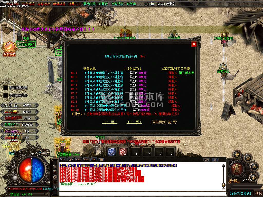 下来就是封神(用R点)--进入封神地打封神专属怪(可爆终极装备)获得丰厚奖励